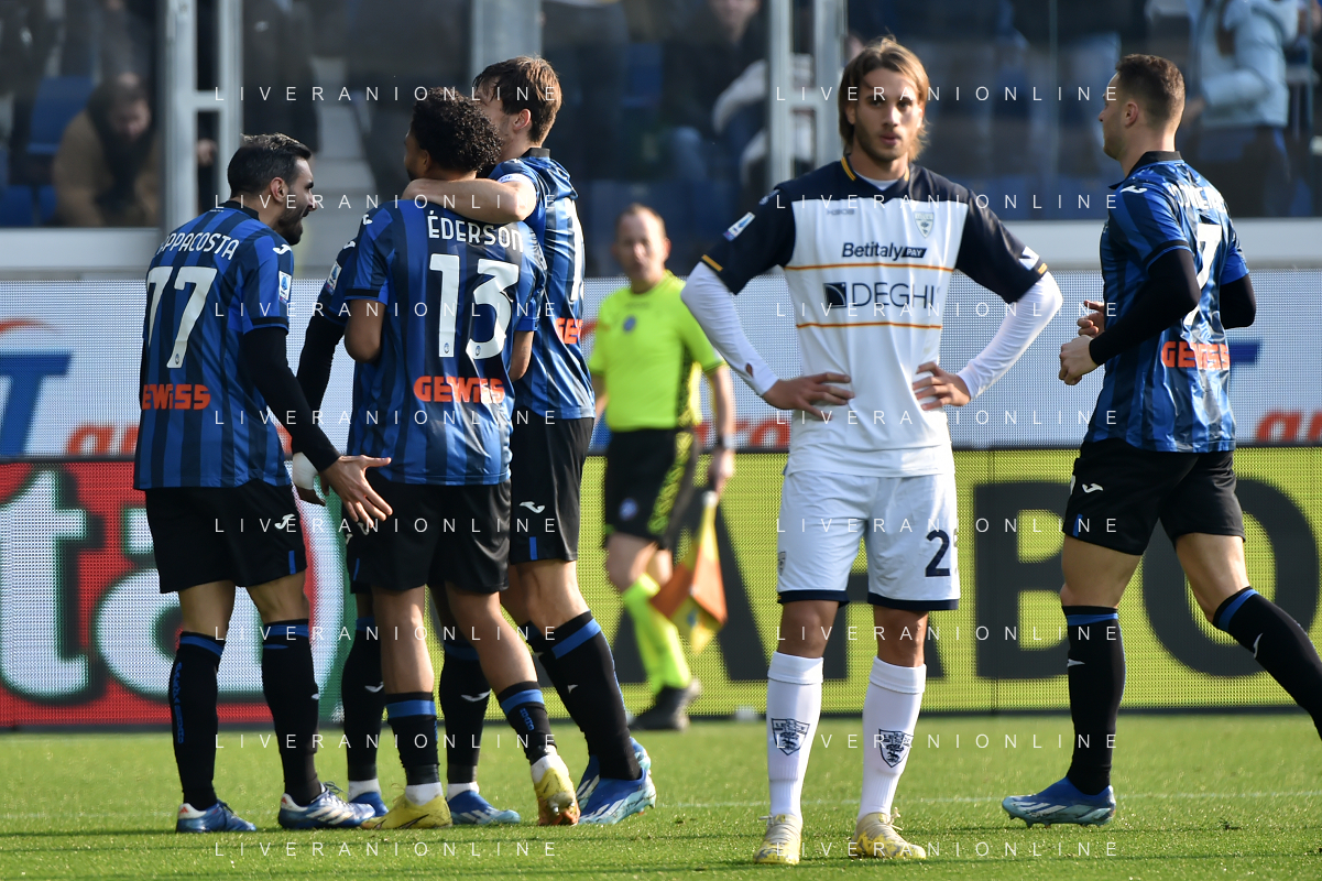 TVRG Atalanta vs Lecce nella foto esultanza Atalanta dopo il gol dell'1 a 0 Bergamo 30-12-2023 Gewiss Stadium - Stadio Atleti Azzurri d'Italia Campionato Serie A TIM - 18a giornata foto Roberto Garavaglia/ag. Aldo Liverani sas