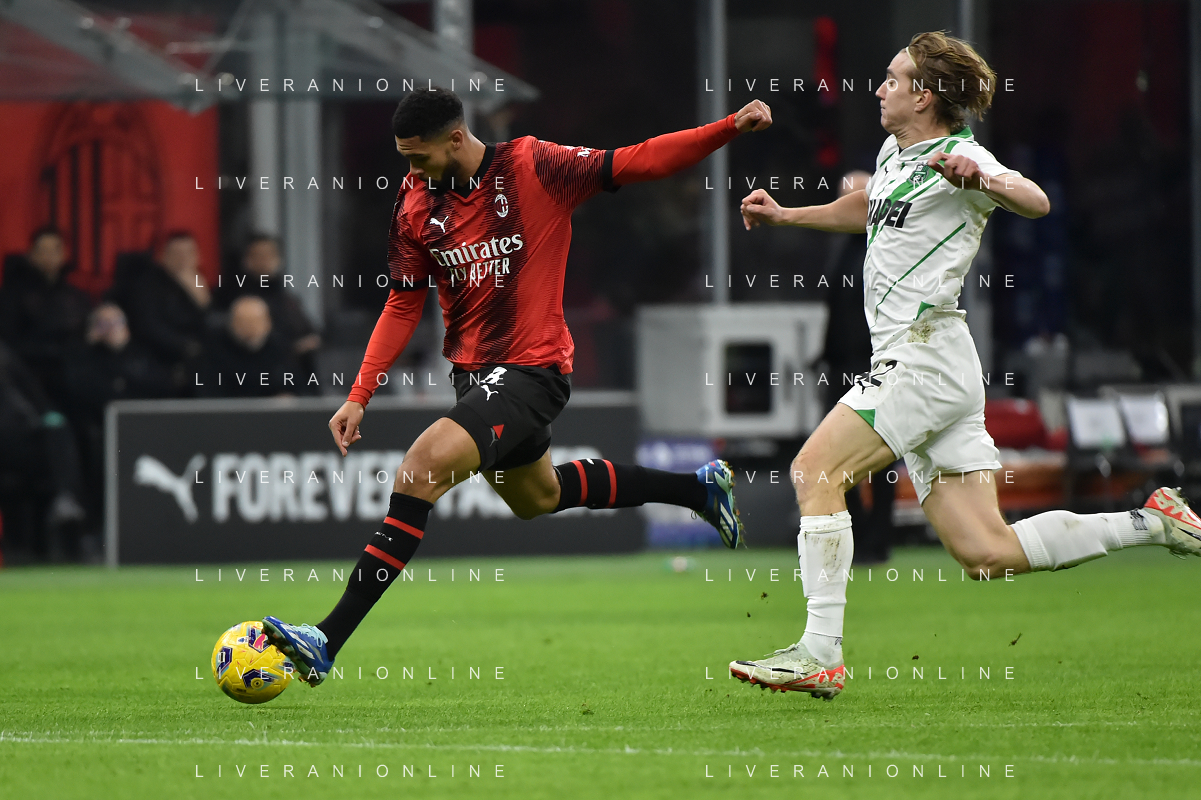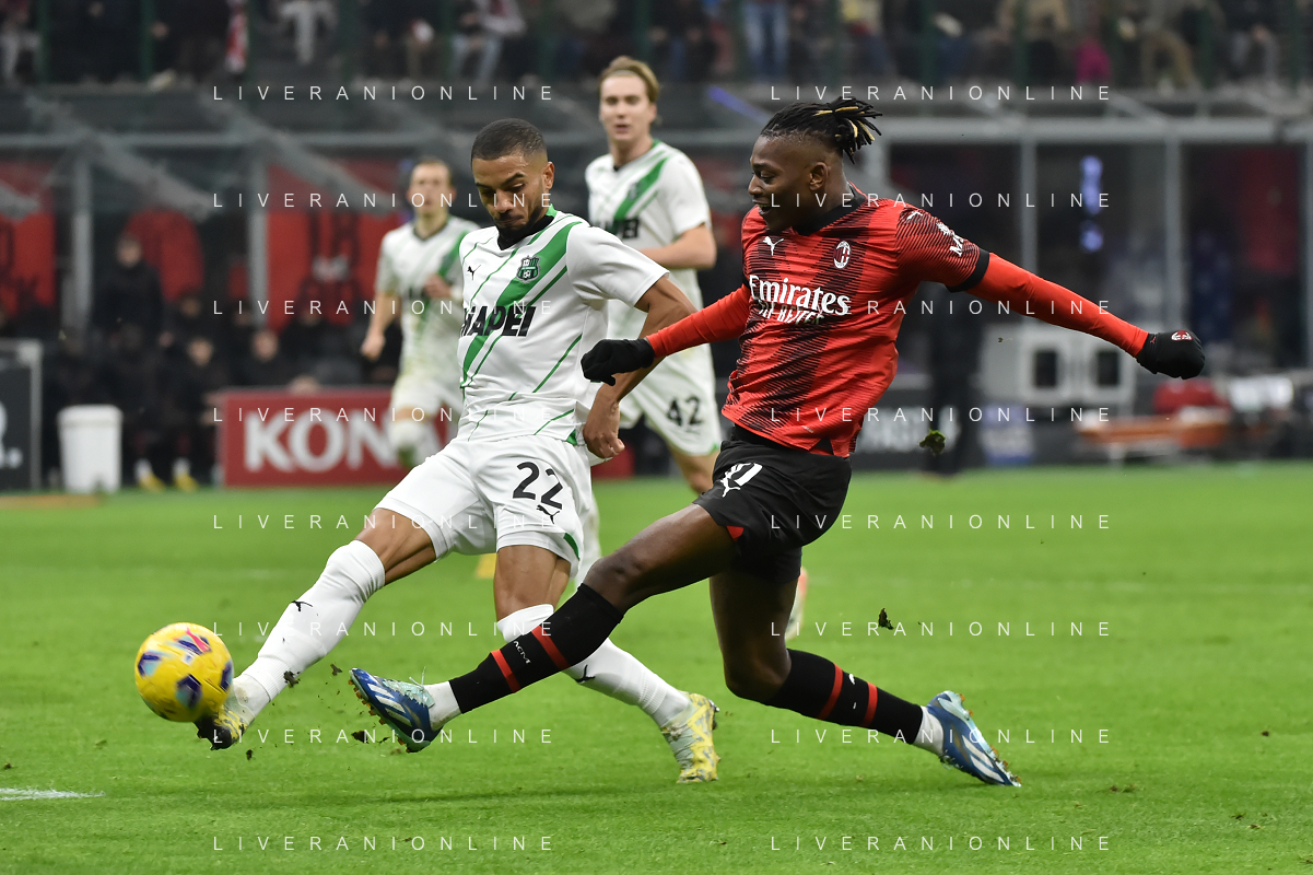 Milan vs Sassuolo nella foto Rafael Leao (Milan) occasione da gol e sulla SX Jeremy Toljan (Sassuolo) Milano 30-12-2023 Stadio Giuseppe Meazza - San Siro Campionato Serie A TIM - 18a giornata foto Roberto Garavaglia/ag. Aldo Liverani sas/AGENZIA ALDO LIVERANI SAS