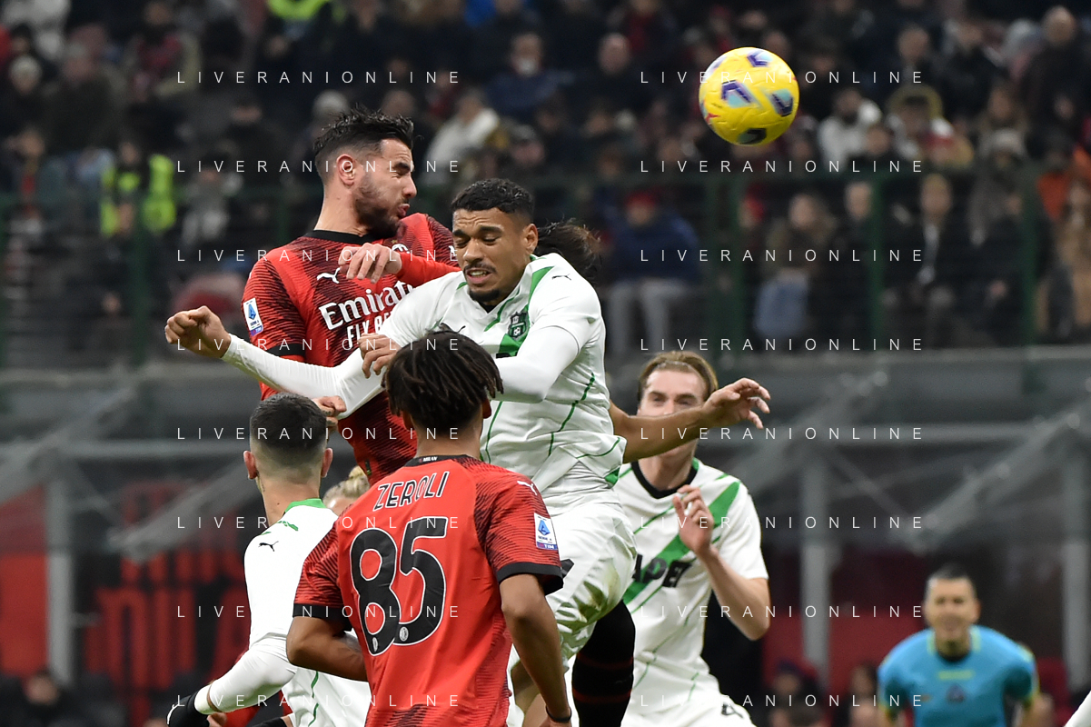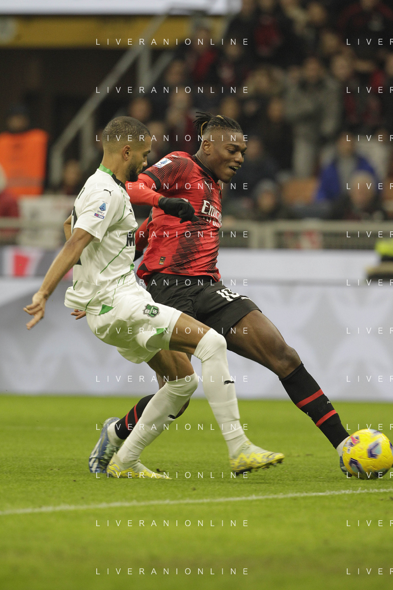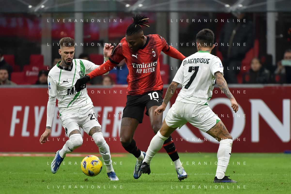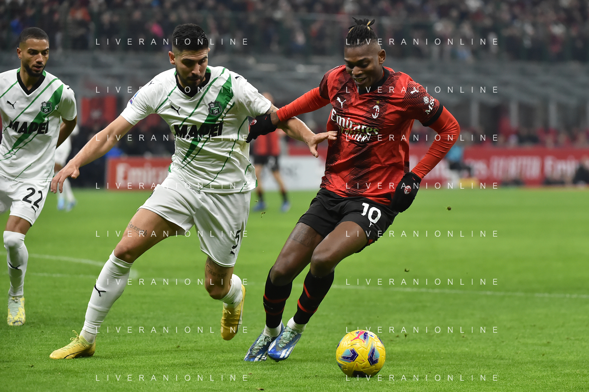 Milan vs Sassuolo nella foto Martin Erlic (Sassuolo) e Rafael Leao (Milan) Milano 30-12-2023 Stadio Giuseppe Meazza - San Siro Campionato Serie A TIM - 18a giornata foto Roberto Garavaglia/ag. Aldo Liverani sas/AGENZIA ALDO LIVERANI SAS