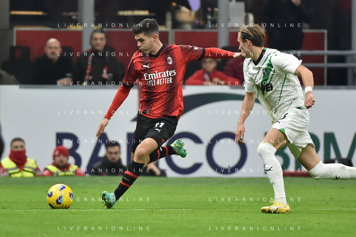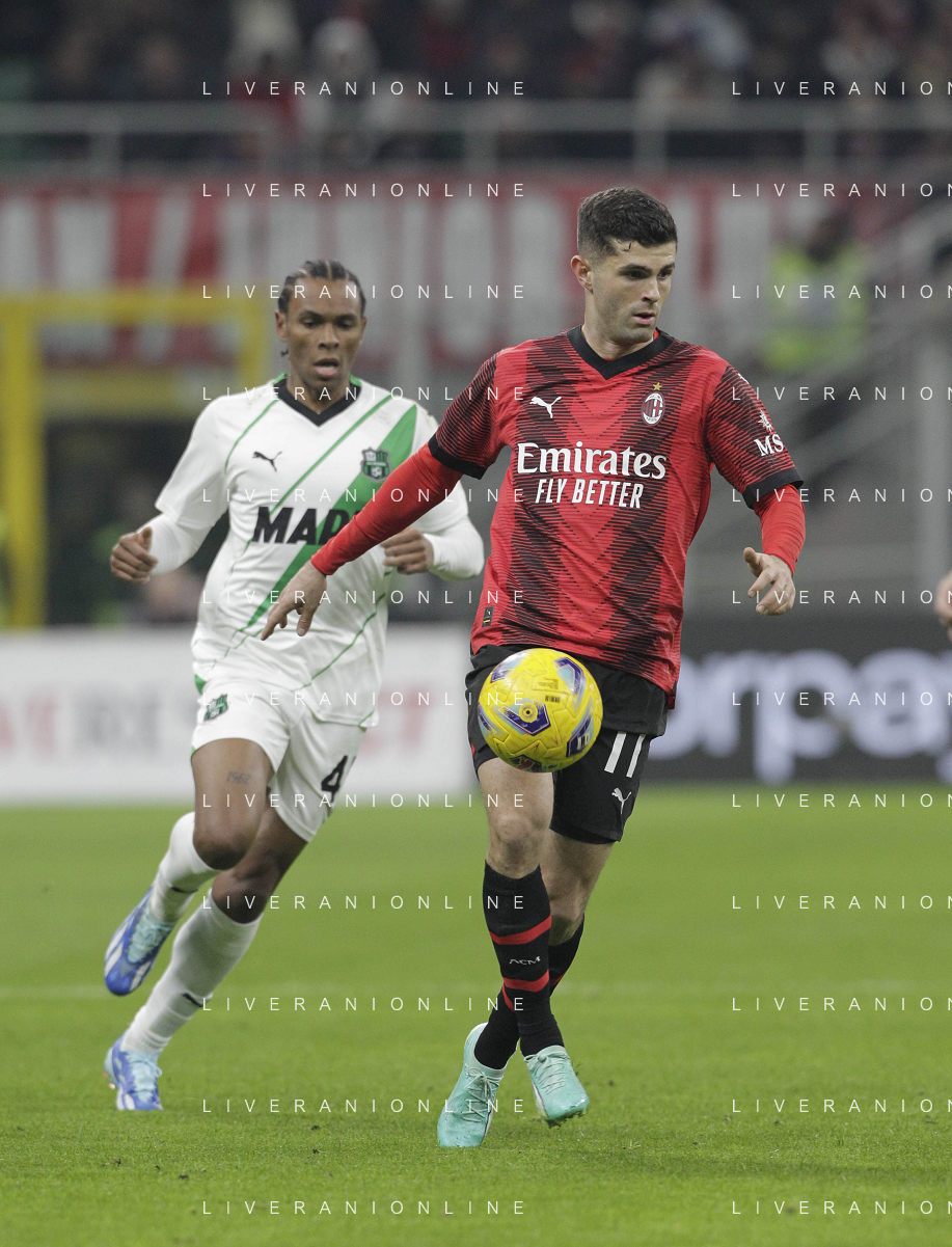 Milan vs Sassuolo nella foto Christian Mate Pulisic (Milan) Milano 30-12-2023 Stadio Giuseppe Meazza - San Siro Campionato Serie A TIM - 18a giornata foto Roberto Garavaglia/ag. Aldo Liverani sas/AGENZIA ALDO LIVERANI SAS