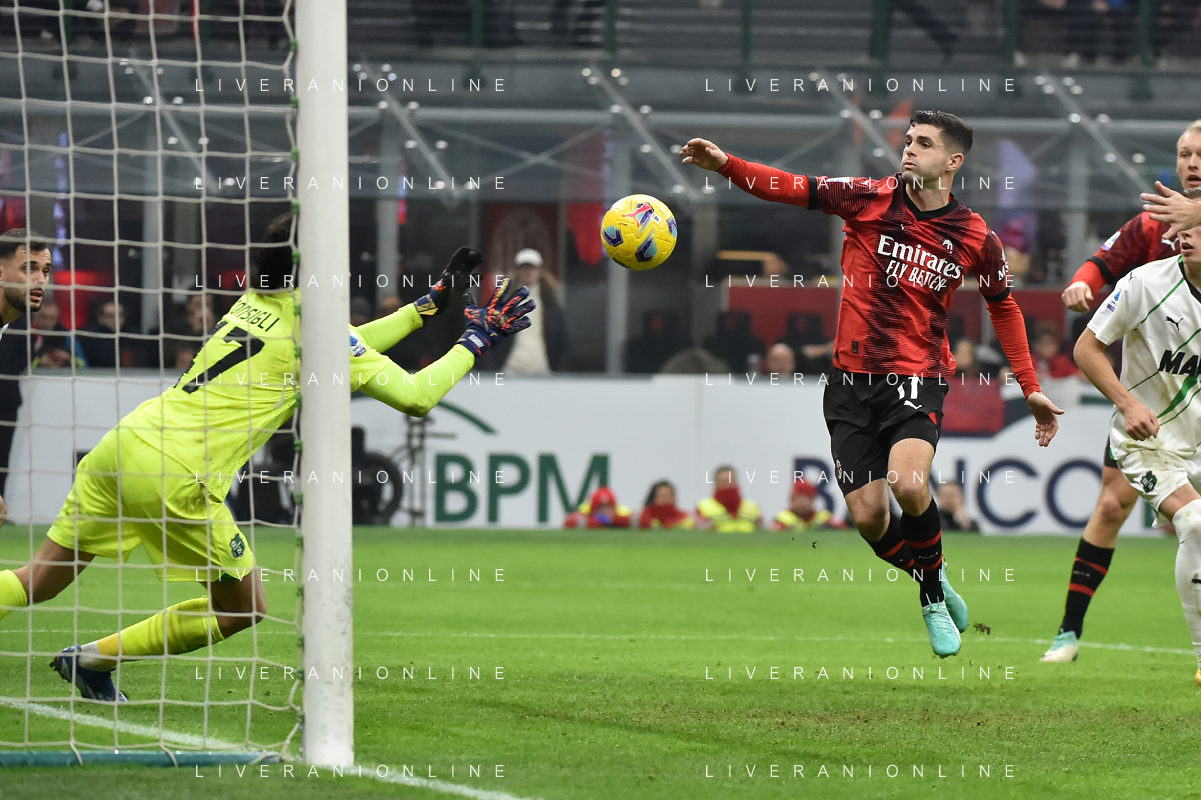 Milan vs Sassuolo nella foto Christian Mate Pulisic (Milan) occasione da gol Milano 30-12-2023 Stadio Giuseppe Meazza - San Siro Campionato Serie A TIM - 18a giornata foto Roberto Garavaglia/ag. Aldo Liverani sas/AGENZIA ALDO LIVERANI SAS