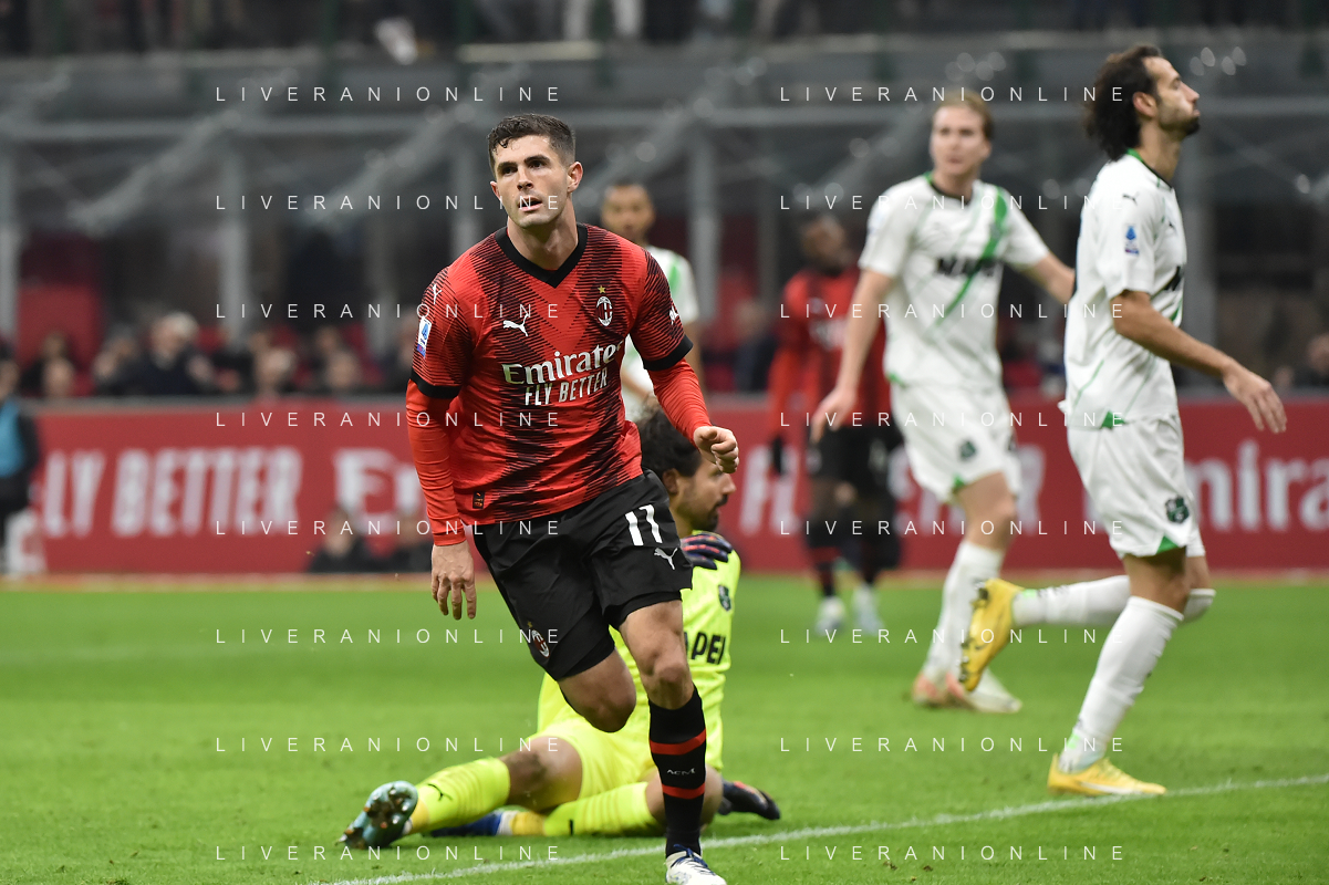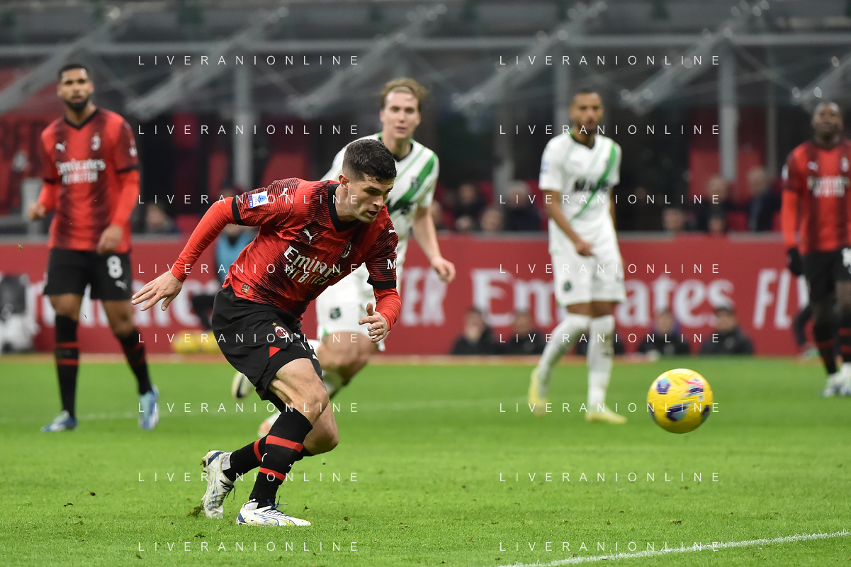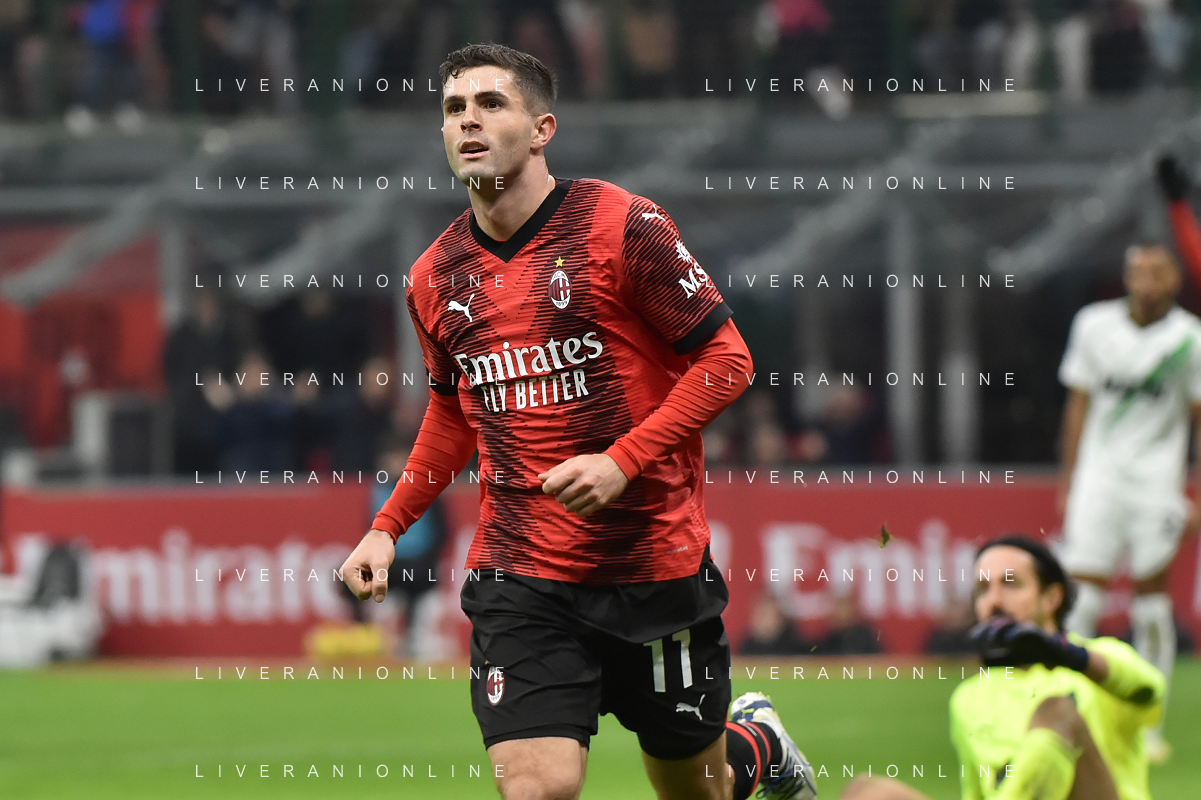 Milan vs Sassuolo nella foto Christian Mate Pulisic (Milan) segna il gol dell'1 a 0 Milano 30-12-2023 Stadio Giuseppe Meazza - San Siro Campionato Serie A TIM - 18a giornata foto Roberto Garavaglia/ag. Aldo Liverani sas/AGENZIA ALDO LIVERANI SAS