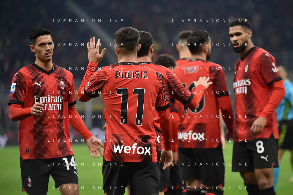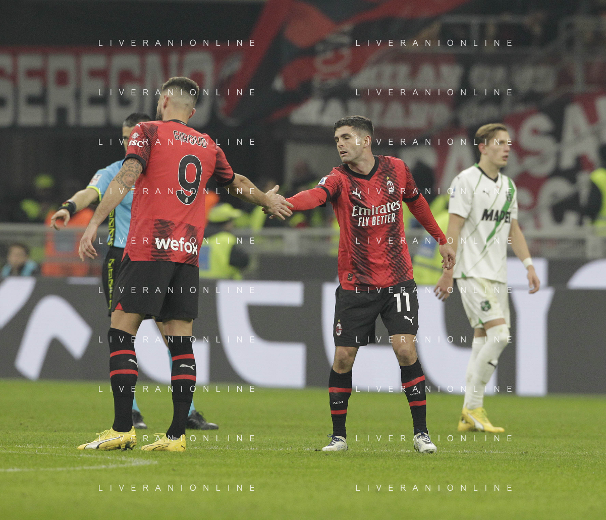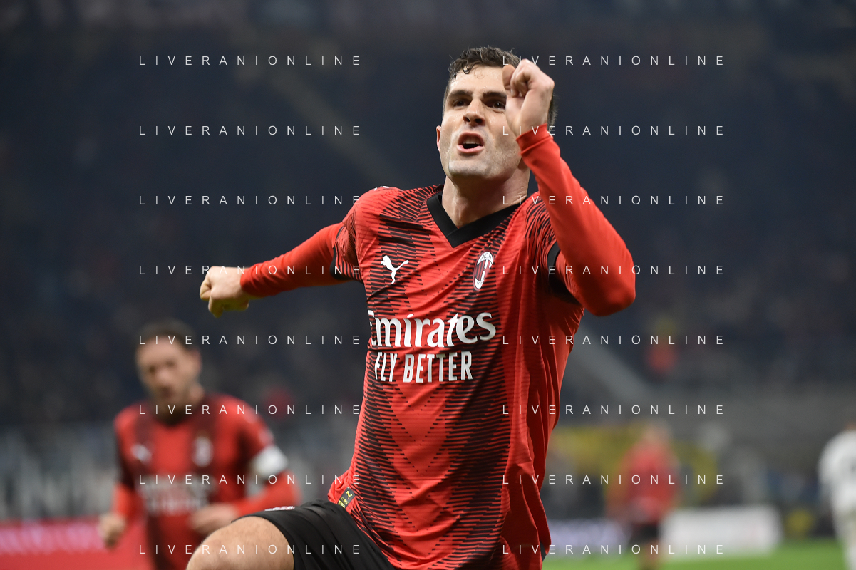 Milan vs Sassuolo nella foto Christian Mate Pulisic (Milan) esulta dopo il gol dell'1 a 0 Milano 30-12-2023 Stadio Giuseppe Meazza - San Siro Campionato Serie A TIM - 18a giornata foto Roberto Garavaglia/ag. Aldo Liverani sas/AGENZIA ALDO LIVERANI SAS