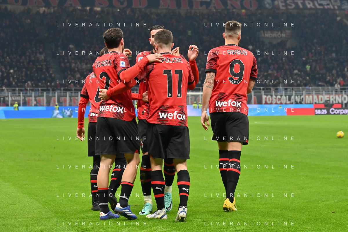 Milan vs Sassuolo nella foto esultanza Milan dopo il gol dell'1 a 0 Milano 30-12-2023 Stadio Giuseppe Meazza - San Siro Campionato Serie A TIM - 18a giornata foto Roberto Garavaglia/ag. Aldo Liverani sas/AGENZIA ALDO LIVERANI SAS