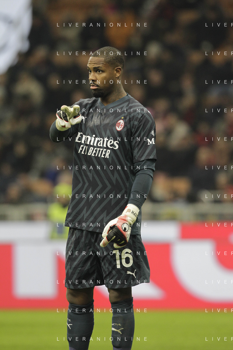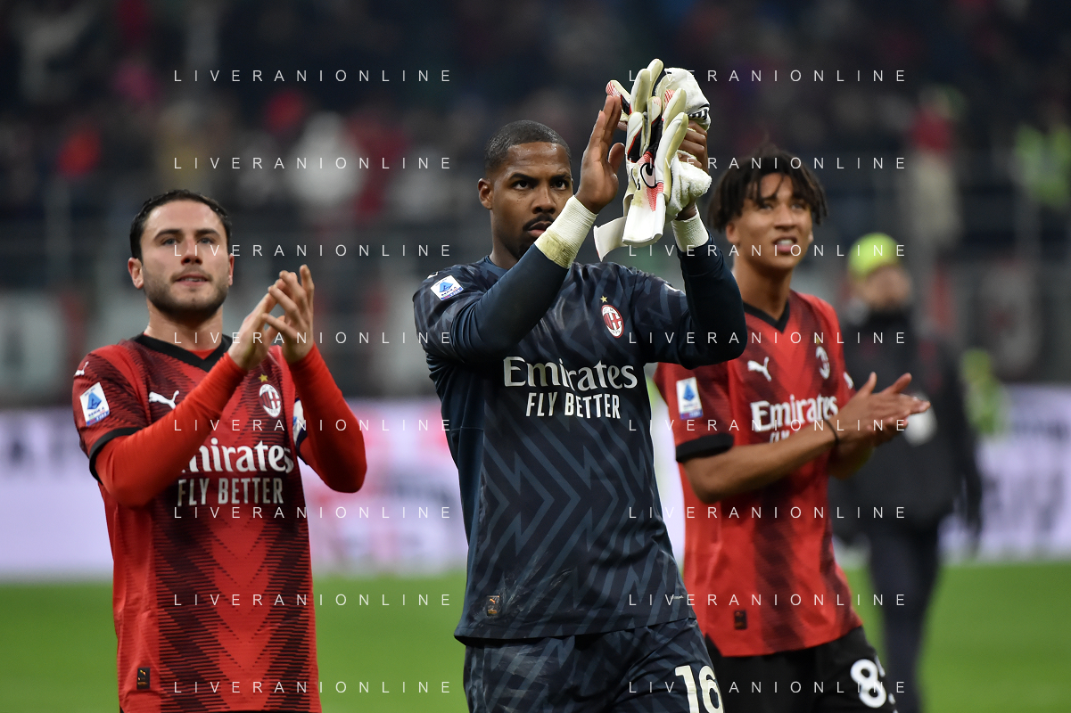 Milan vs Sassuolo nella foto Mike Maignan (Milan) esultanza a fine partitan Milano 30-12-2023 Stadio Giuseppe Meazza - San Siro Campionato Serie A TIM - 18a giornata foto Roberto Garavaglia/ag. Aldo Liverani sas