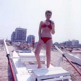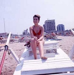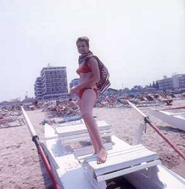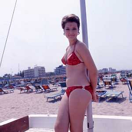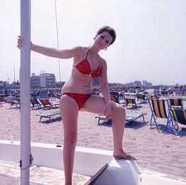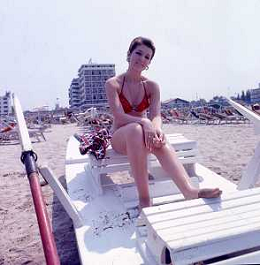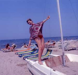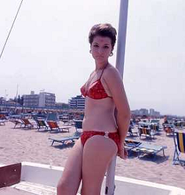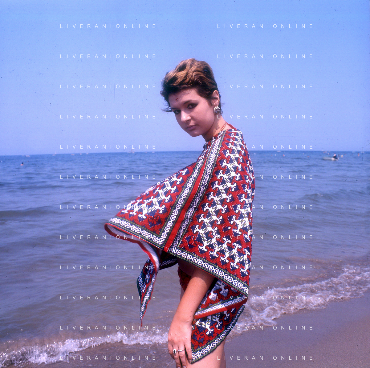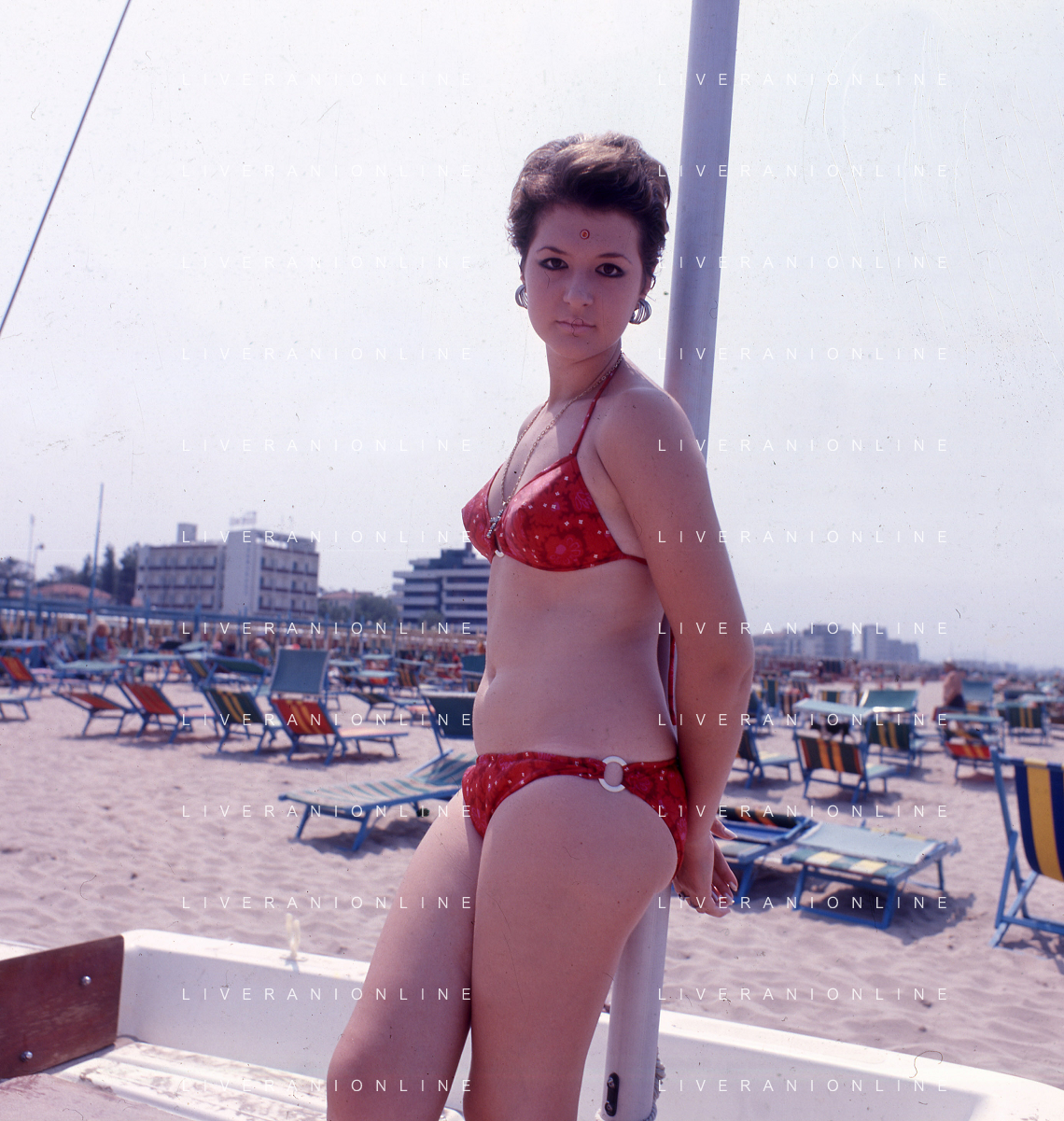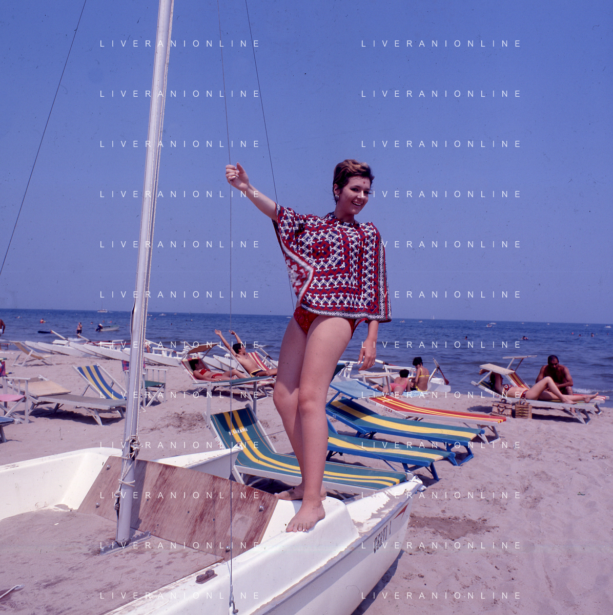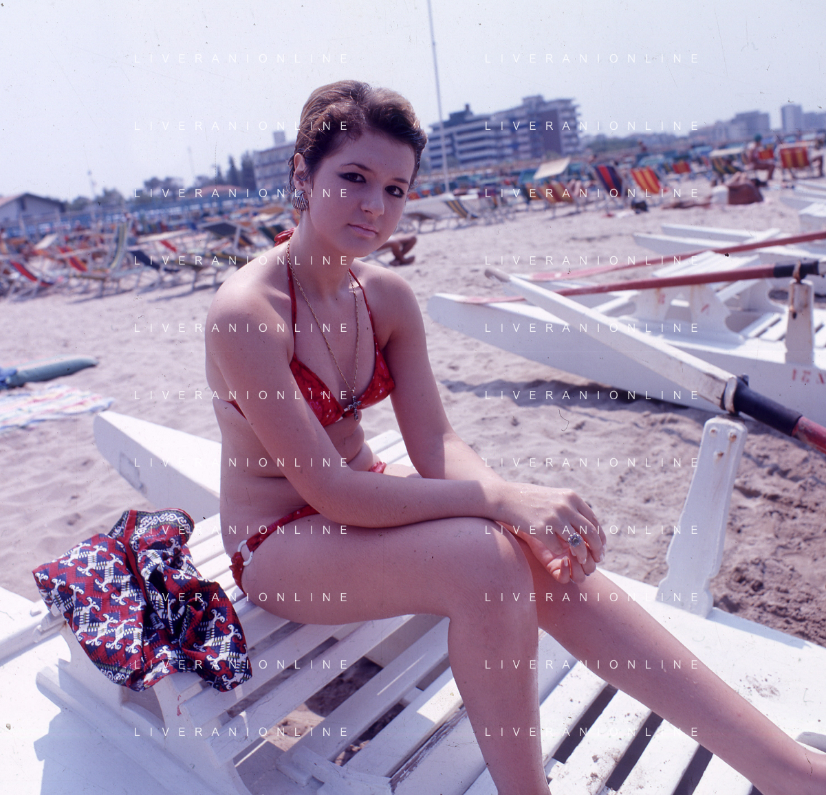 DIAP-RETROSPETTIVA LORETTA GOGGI-CANTANTE-ATTRICE-IMITATRICE-CONDUTTRICE TELEVISIVA E SCRITTRICE NELLA FOTO LORETTA GOGGI AL MARE ANNI 70 AG ALDO LIVERANI SAS