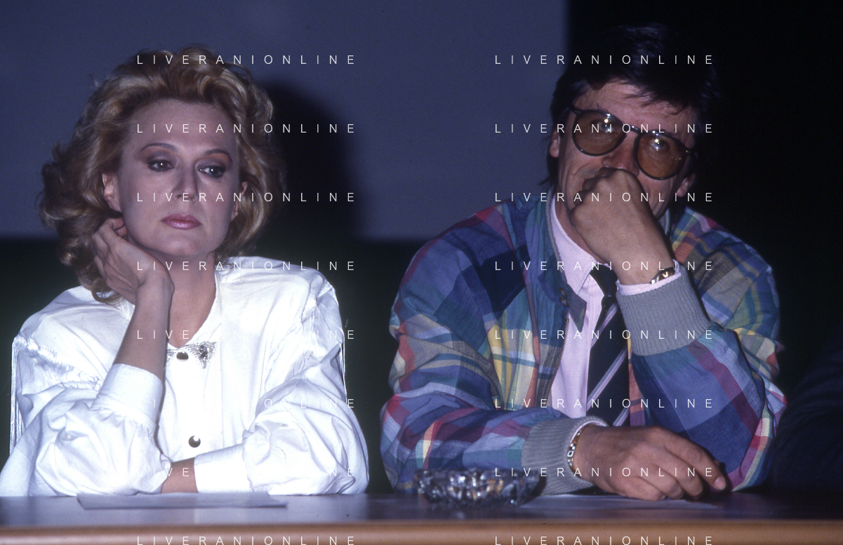 DIAP-RETROSPETTIVA LORETTA GOGGI-CANTANTE-ATTRICE-IMITATRICE-CONDUTTRICE TELEVISIVA E SCRITTRICE NELLA FOTO LORETTA GOGGI CON GIANNI BREZZA NELL'ANNO 1987 A ROMA FOTO EDGARDO DELLA SCORCIOSA AG ALDO LIVERANI SAS
