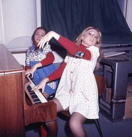 DIAP-RETROSPETTIVA LORETTA GOGGI-CANTANTE-ATTRICE-IMITATRICE-CONDUTTRICE TELEVISIVA E SCRITTRICE NELLA FOTO LORETTA GOGGI CON LA SORELLA DANIELA GOGGI AG ALDO LIVERANI SAS