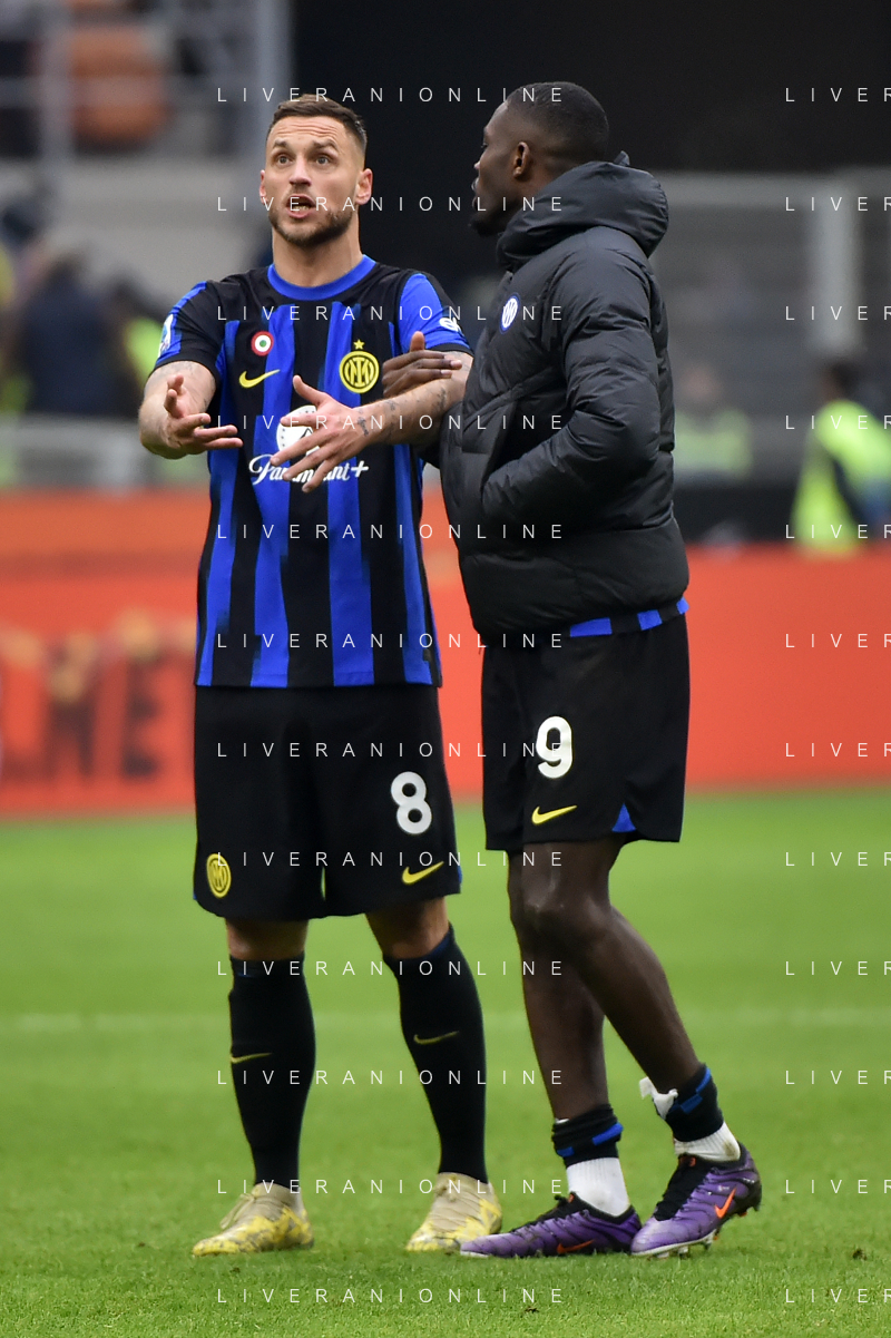 Inter vs Hellas Verona nella foto Marko Arnautovic (Inter) SX e Marcus Thuram (Inter) DX a fine gara Milano 06-01-2024 Stadio Giuseppe Meazza - San Siro Campionato Serie A TIM - 19a giornata foto Roberto Garavaglia/Agenzia Aldo Liverani sas