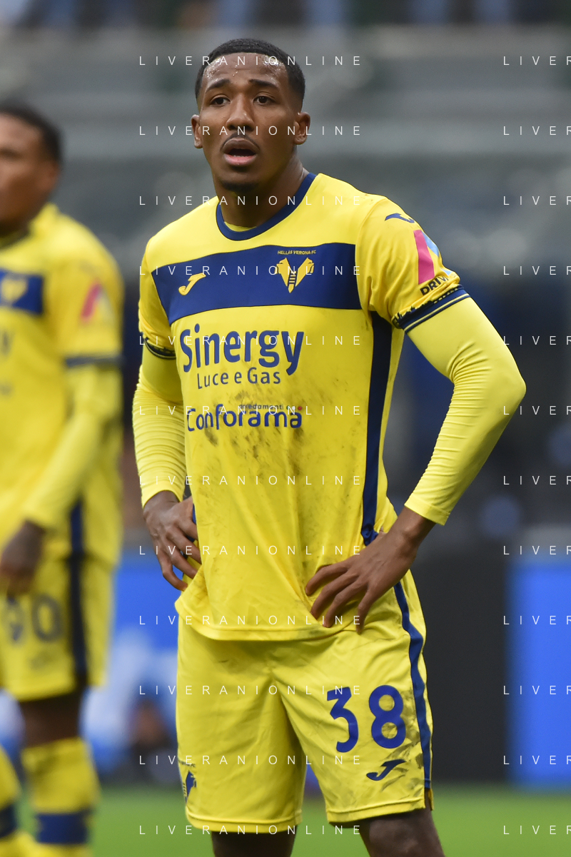 Inter vs Hellas Verona nella foto Jordi Mboula (Hellas Verona) Milano 06-01-2024 Stadio Giuseppe Meazza - San Siro Campionato Serie A TIM - 19a giornata foto Roberto Garavaglia/Agenzia Aldo Liverani sas