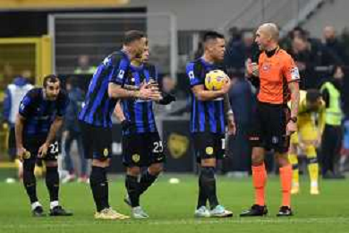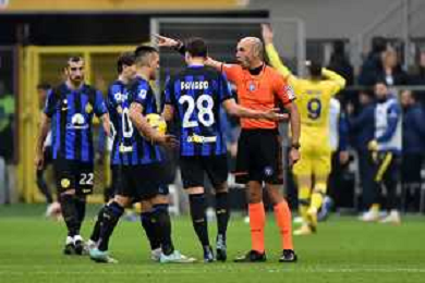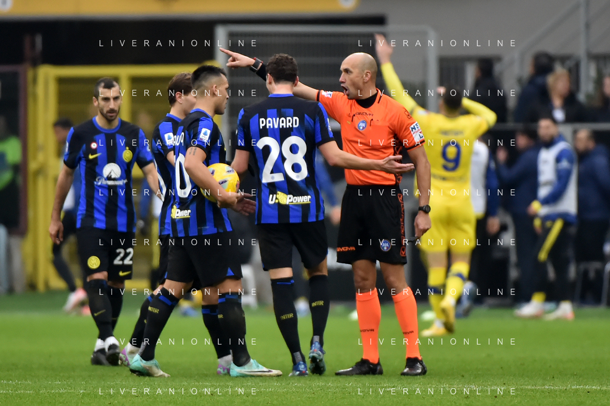 Inter vs Hellas Verona nella foto proteste Inter con l'arbitro Michael Fabbri di Ravenna Milano 06-01-2024 Stadio Giuseppe Meazza - San Siro Campionato Serie A TIM - 19a giornata foto Roberto Garavaglia/Agenzia Aldo Liverani sas/AGENZIA ALDO LIVERANI SAS
