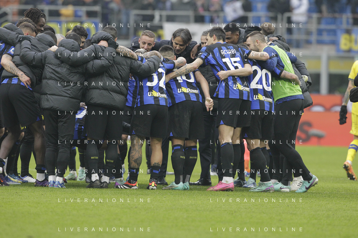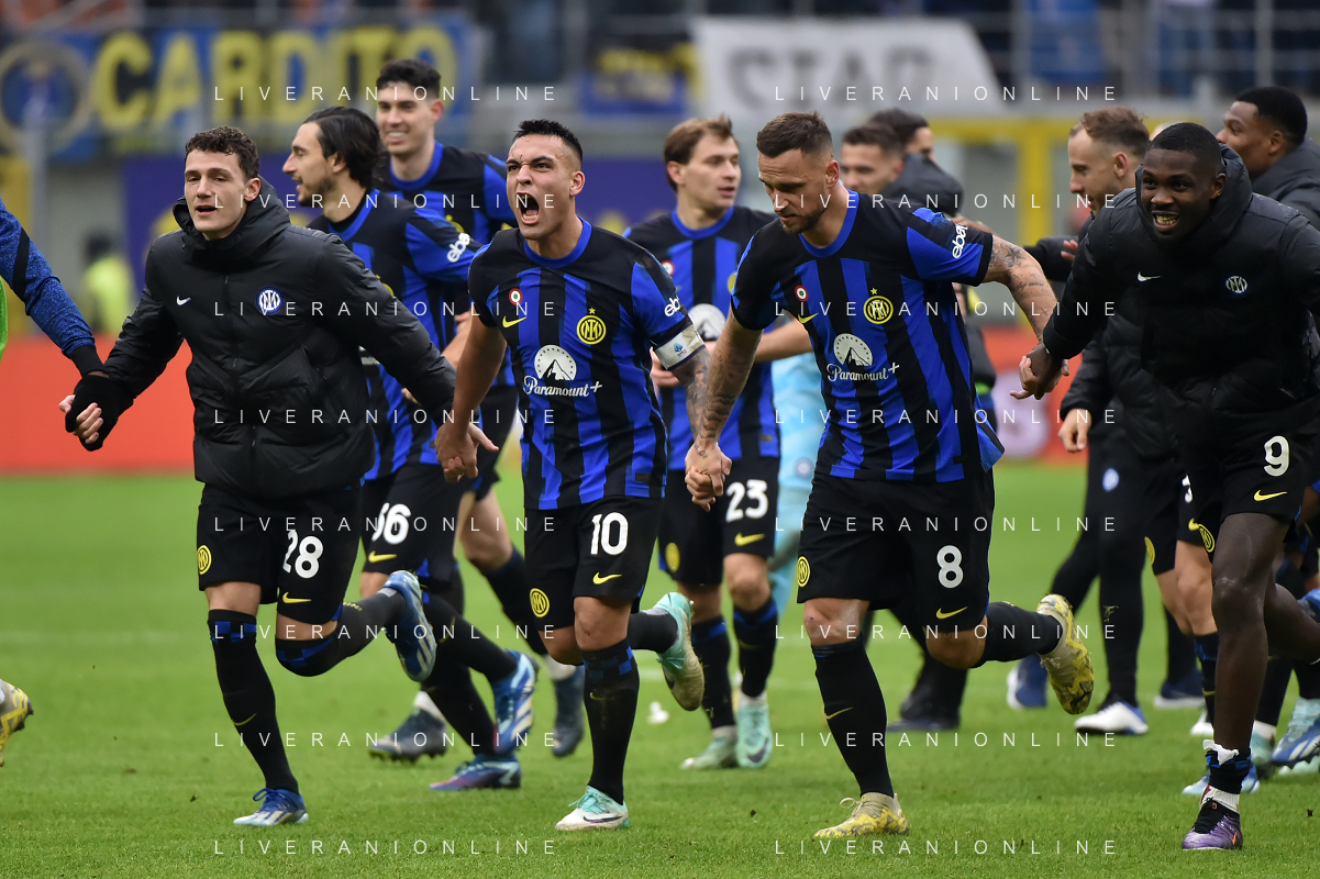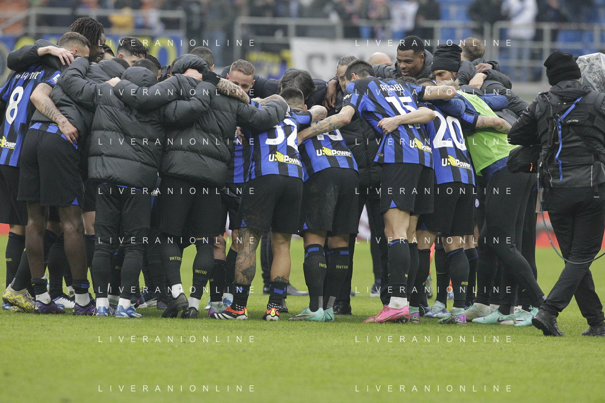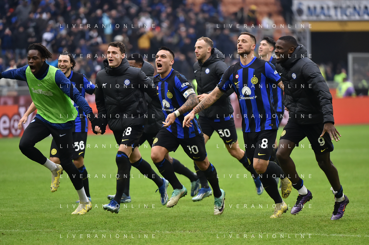 Inter vs Hellas Verona nella foto esultanza finale Inter Milano 06-01-2024 Stadio Giuseppe Meazza - San Siro Campionato Serie A TIM - 19a giornata foto Roberto Garavaglia/Agenzia Aldo Liverani sas/AGENZIA ALDO LIVERANI SAS