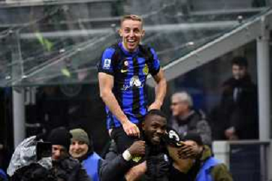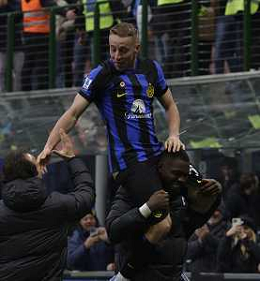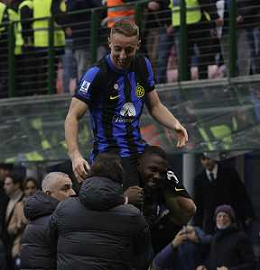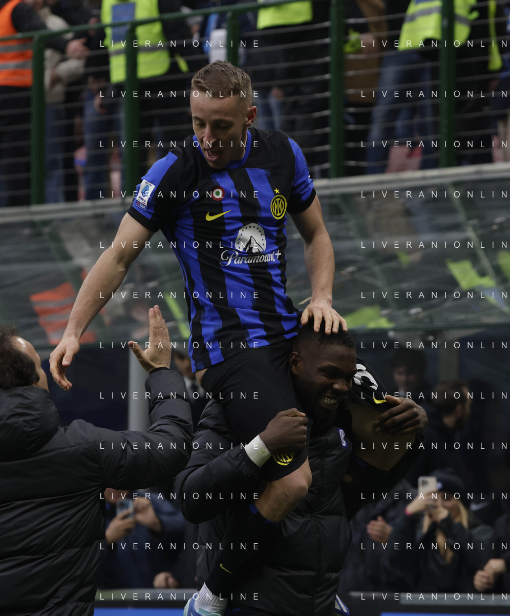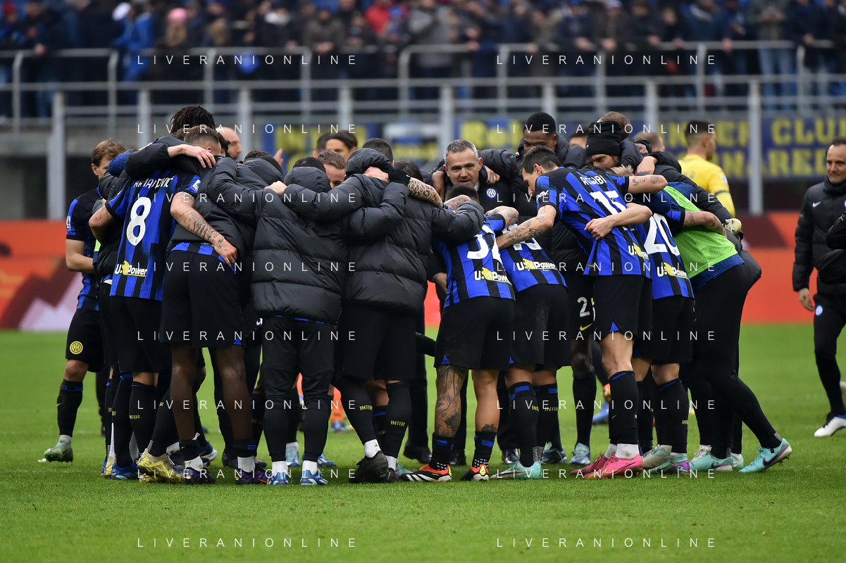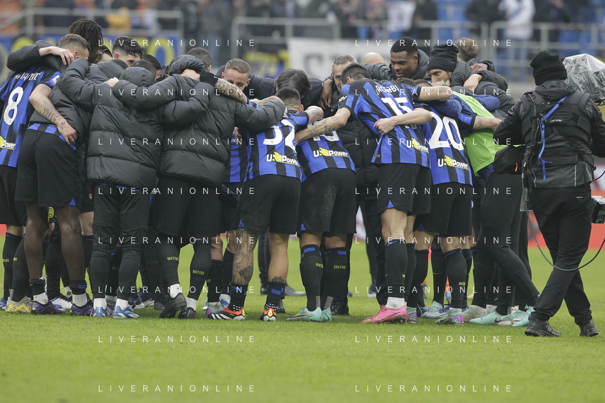 Inter vs Hellas Verona nella foto esultanza finale Inter Milano 06-01-2024 Stadio Giuseppe Meazza - San Siro Campionato Serie A TIM - 19a giornata foto Roberto Garavaglia/Agenzia Aldo Liverani sas/AGENZIA ALDO LIVERANI SAS