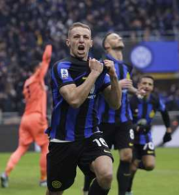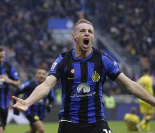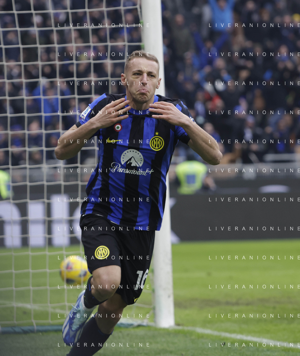 Inter vs Hellas Verona nella foto Davide Frattesi (Inter) segna il gol del 2 a 1 Milano 06-01-2024 Stadio Giuseppe Meazza - San Siro Campionato Serie A TIM - 19a giornata foto Roberto Garavaglia/Agenzia Aldo Liverani sas/AGENZIA ALDO LIVERANI SAS