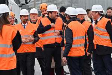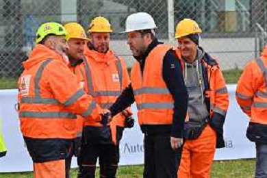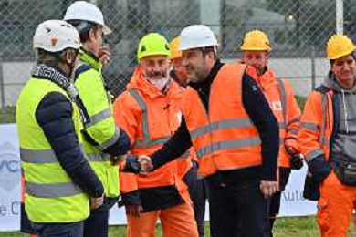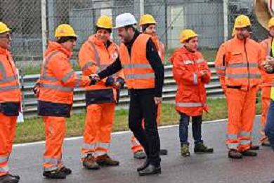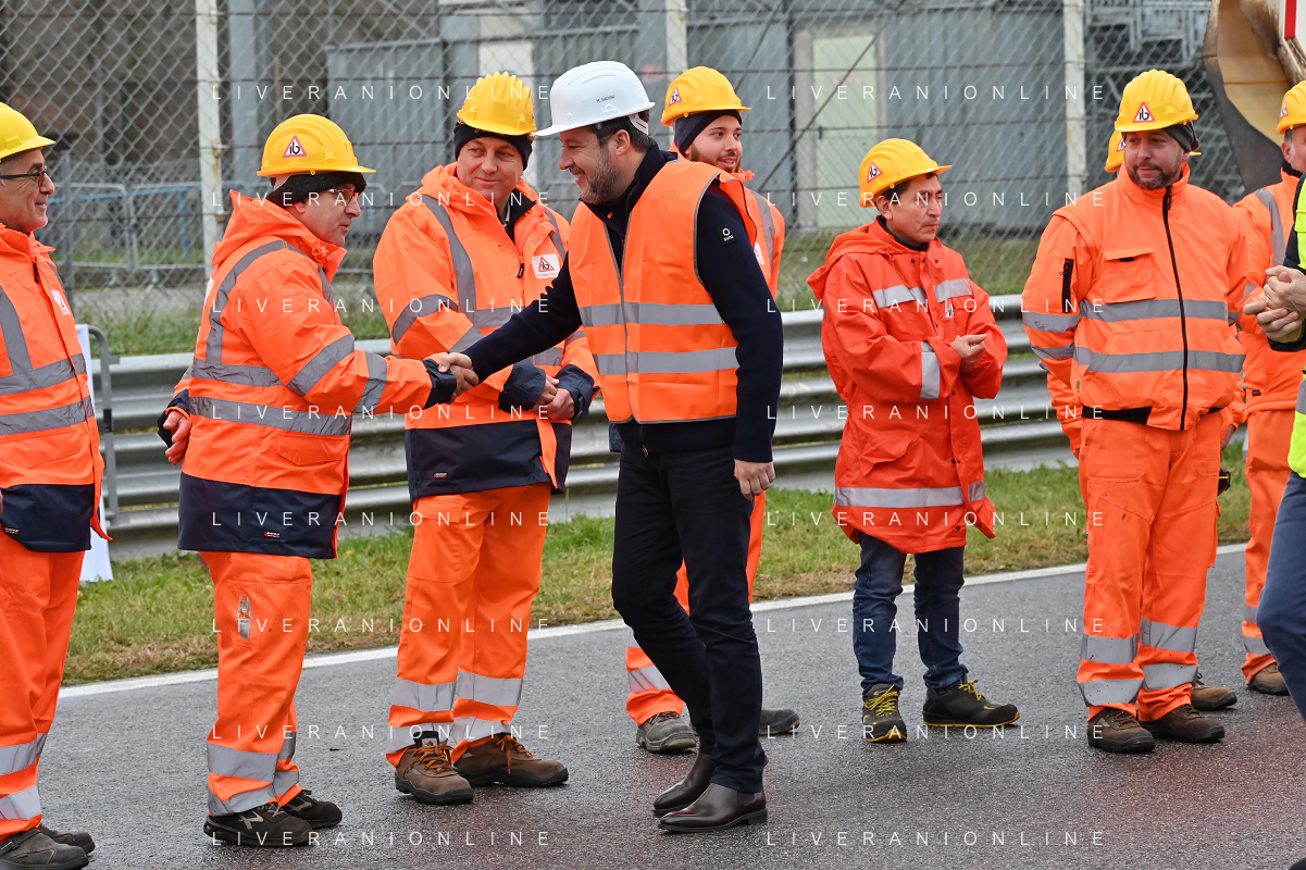 TVRG Lavori circuito Monza nella foto Matteo Salvini ministro alle infrastrutture e dei trasporti saluta gli operai Monza 08-01-2024 Inizio dei lavori di ammodernamento e riqualificazione del circuito di Formula 1 foto Roberto Garavaglia/Agenzia Aldo Liverani sas