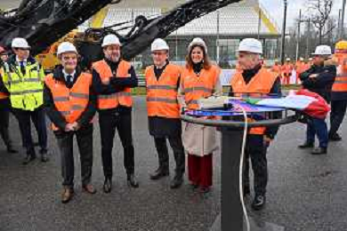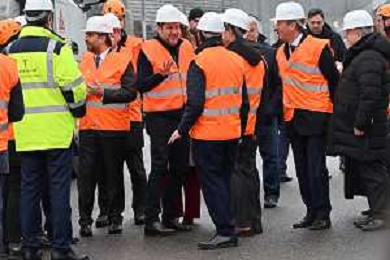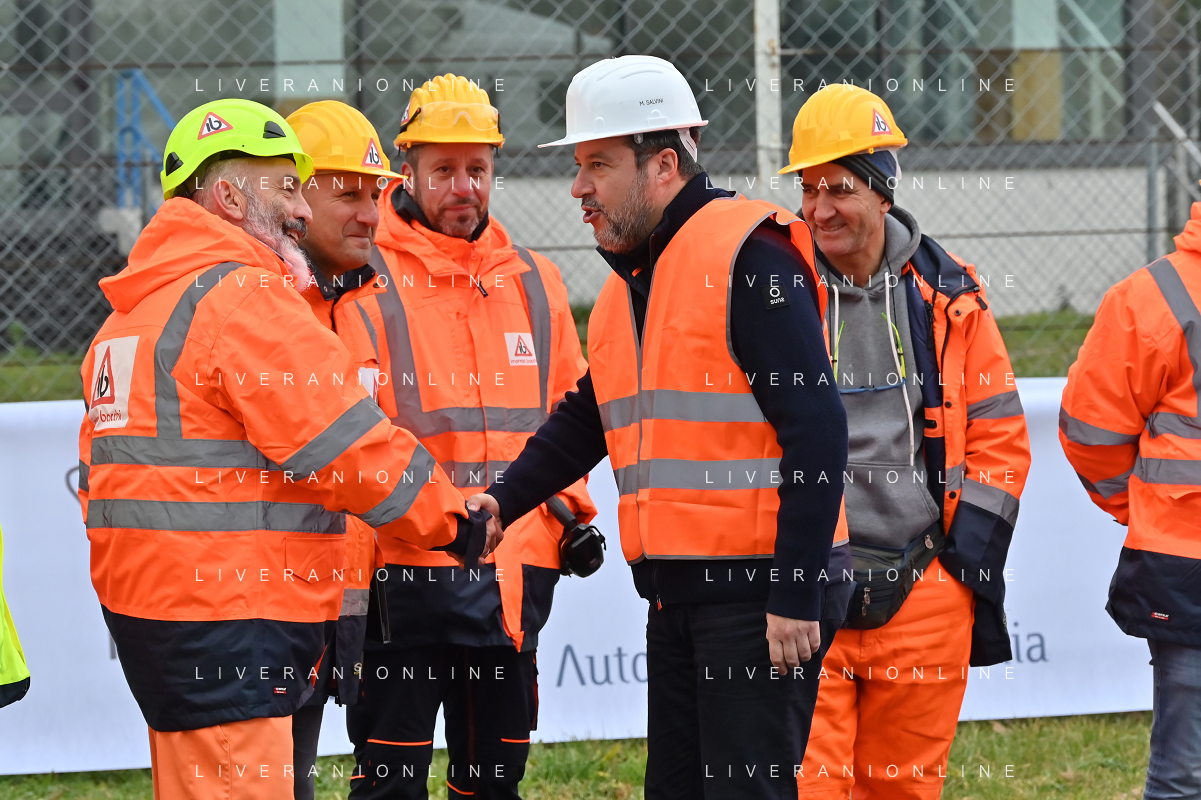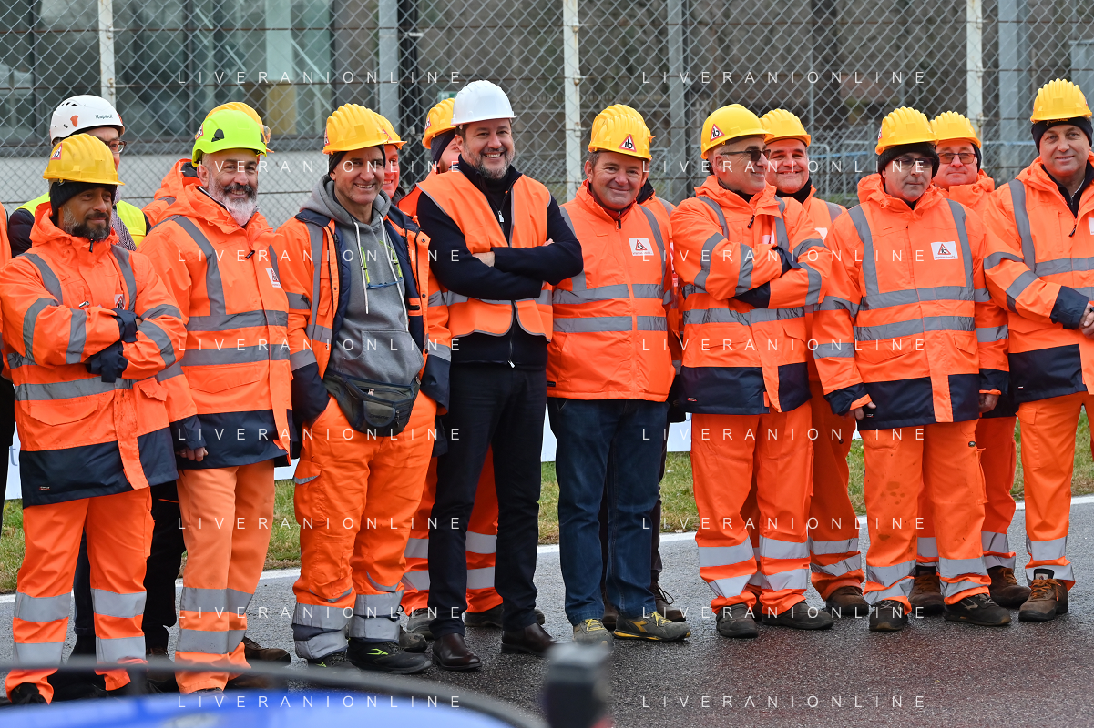 TVRG Lavori circuito Monza nella foto Matteo Salvini ministro alle infrastrutture e dei trasporti con gli operai Monza 08-01-2024 Inizio dei lavori di ammodernamento e riqualificazione del circuito di Formula 1 foto Roberto Garavaglia/Agenzia Aldo Liverani sas