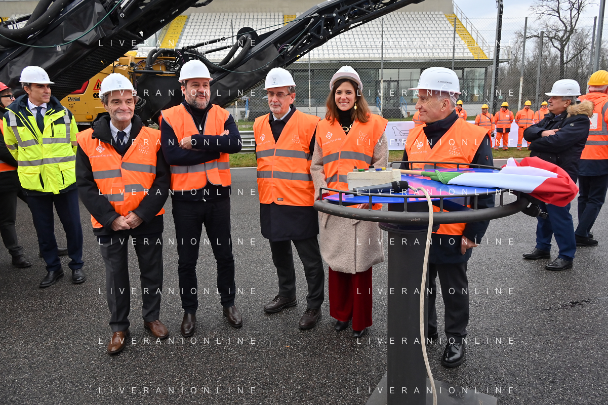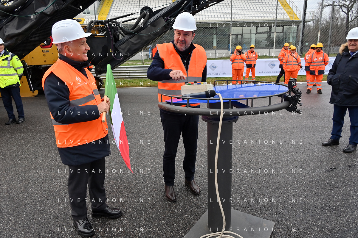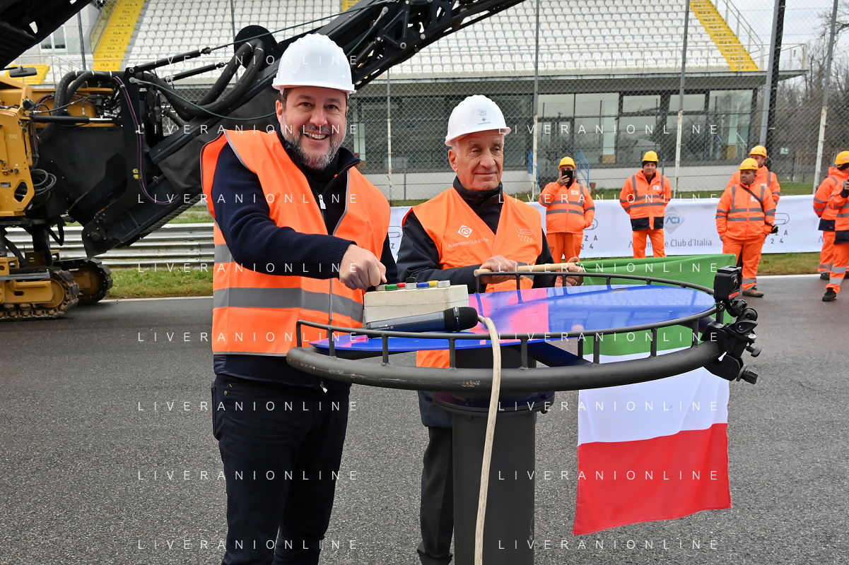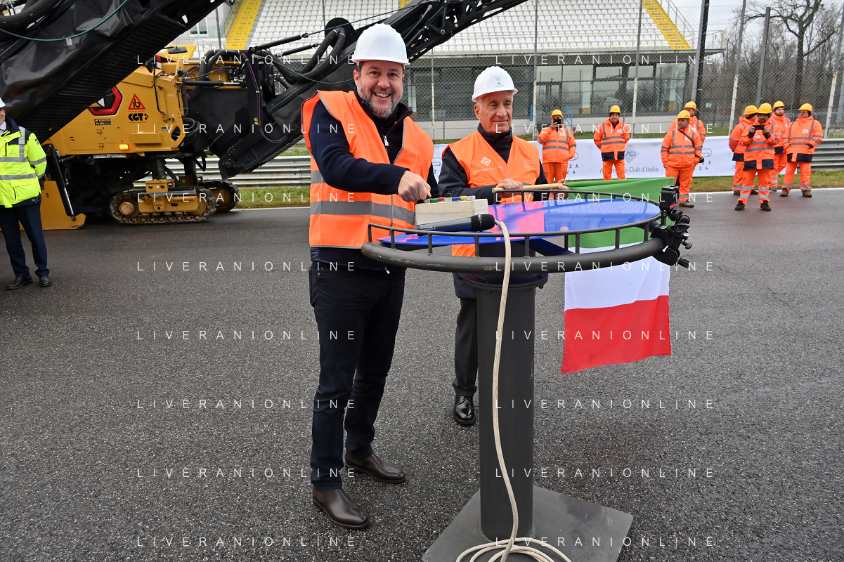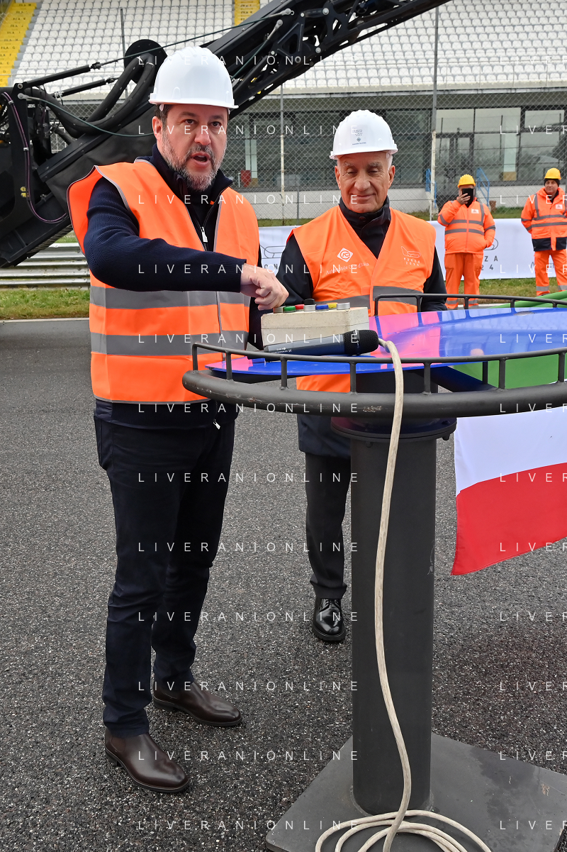 TVRG Lavori circuito Monza nella foto Matteo Salvini ministro alle infrastrutture e dei trasporti presente per il via ai lavori Monza 08-01-2024 Inizio dei lavori di ammodernamento e riqualificazione del circuito di Formula 1 foto Roberto Garavaglia/Agenzia Aldo Liverani sas