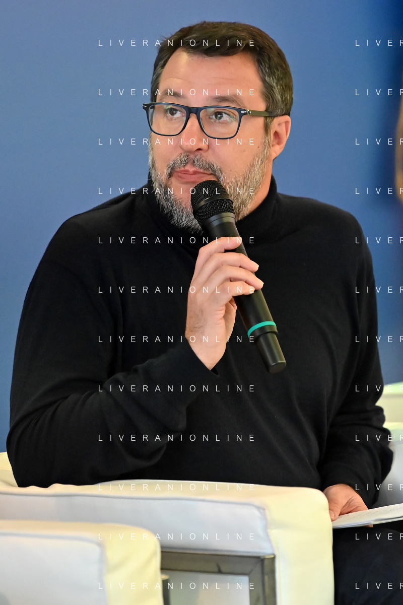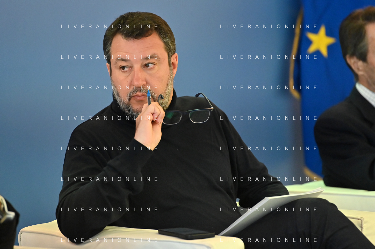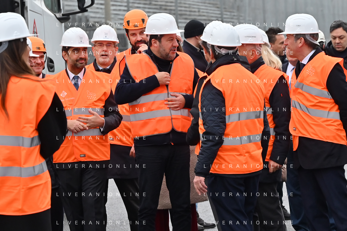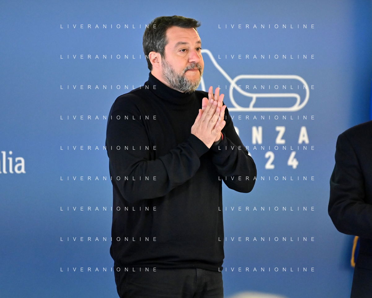 TVRG Lavori circuito Monza nella foto Matteo Salvini ministro alle infrastrutture e dei trasporti presente per il via ai lavori Monza 08-01-2024 Inizio dei lavori di ammodernamento e riqualificazione del circuito di Formula 1 foto Roberto Garavaglia/Agenzia Aldo Liverani sas