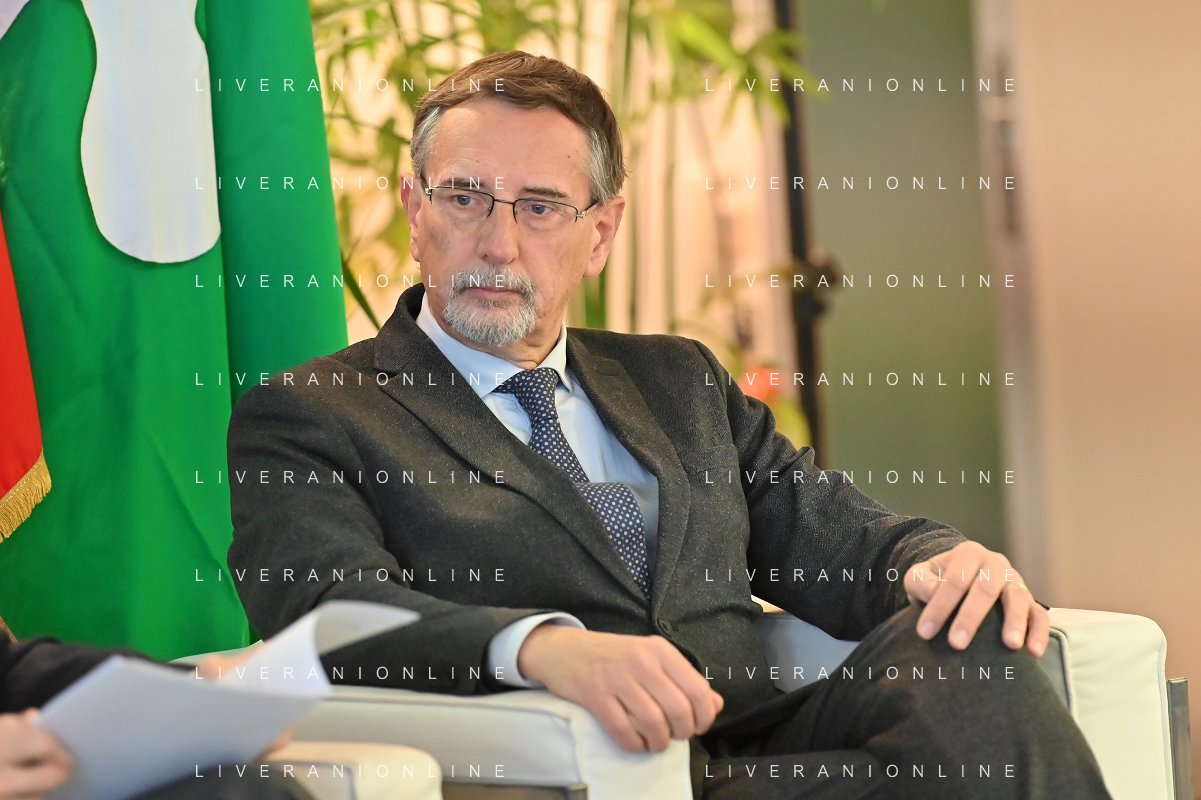 TVRG Lavori circuito Monza nella foto Attilio Fontana presidente di Regione Lombardia Monza 08-01-2024 Inizio dei lavori di ammodernamento e riqualificazione del circuito di Formula 1 foto Roberto Garavaglia/Agenzia Aldo Liverani sas