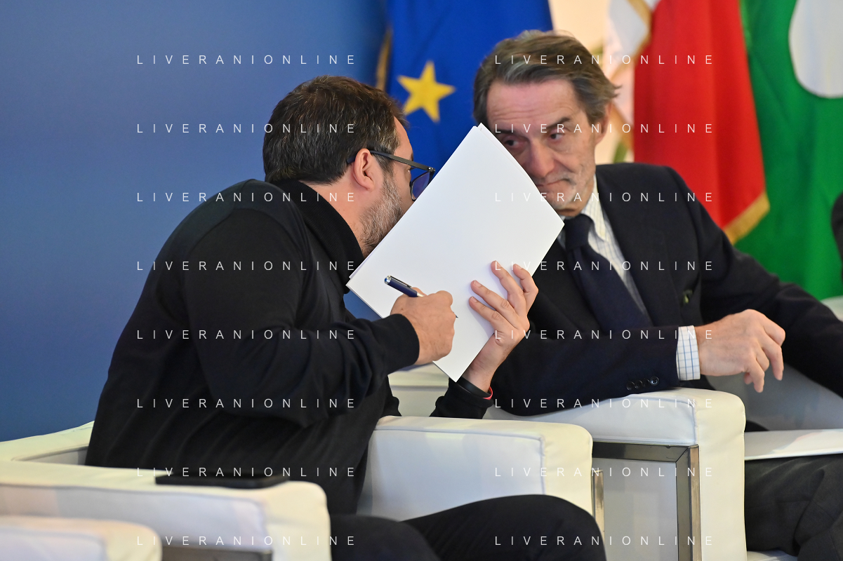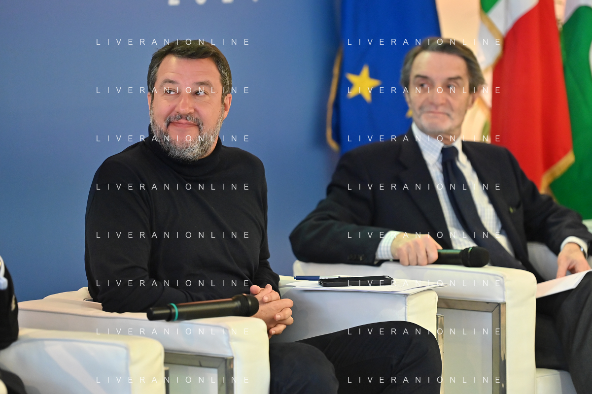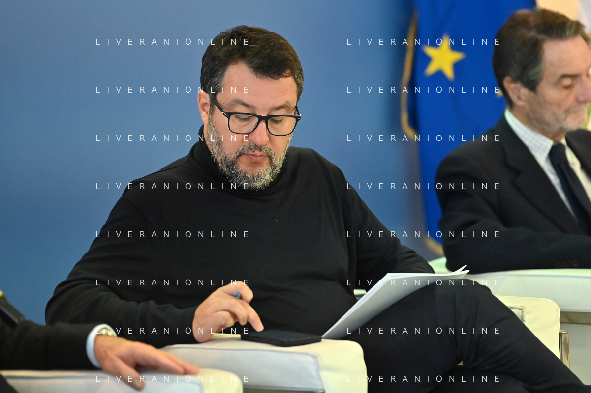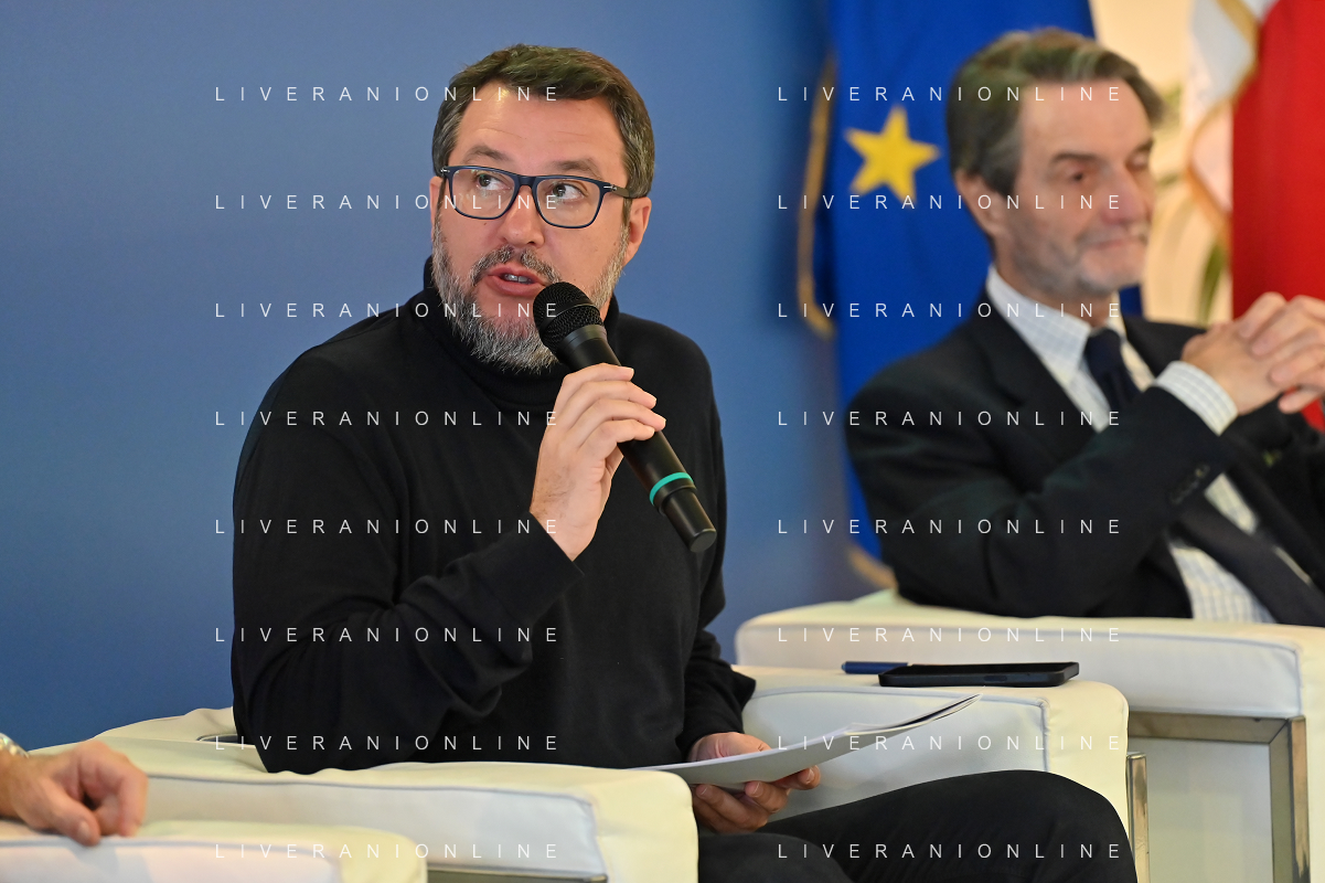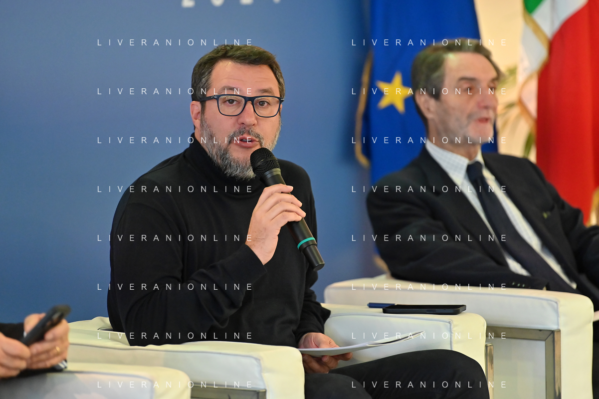TVRG Lavori circuito Monza nella foto Matteo Salvini ministro alle infrastrutture e dei trasporti e sulla DX Attilio Fontana presidente di Regione Lombardia Monza 08-01-2024 Inizio dei lavori di ammodernamento e riqualificazione del circuito di Formula 1 foto Roberto Garavaglia/Agenzia Aldo Liverani sas