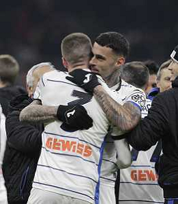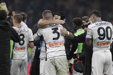 GIOIA FINE PARTITA 10-01-2024 MILANO COPPA ITALIA MILAN-ATALANTA NELLA FOTO ABBRACCI GIOCATORI ATALANTA A FINE GARA FOTO PAOLO GIAMPIETRI-AG ALDO LIVERANI SAS