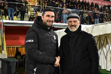 Serie B 2023-2024 Stadio Nicola Ceravolo Catanzaro-Lecco Nella foto: Vincenzo Vivarini ed Emiliano Bonazzoli -Catanzaro - Lecco Campionato Calcio, Serie B 12.01.2024 ©Andrea Rosito/AGENZIA ALDO LIVERANI SAS