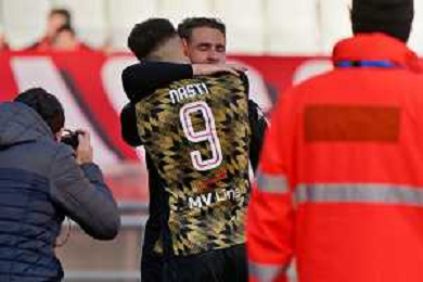 Marco Nasti of SSC Bari celebrates after scoring a goal during the Italian Serie B match SSC Bari vs Ternana Calcio on January 13, 2024 at the San Nicola stadium in Bari, Italy. Photo by Emmanuele Mastrodonato/ag. Aldo Liverani sas/AGENZIA ALDO LIVERANI SAS