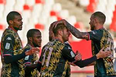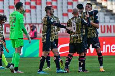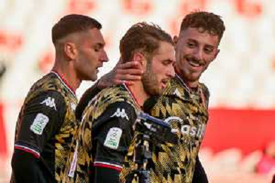Mehdi Dorval of SSC Bari celebrates after scoring a goal with teammates during the Italian Serie B match SSC Bari vs Ternana Calcio on January 13, 2024 at the San Nicola stadium in Bari, Italy. Photo by Emmanuele Mastrodonato/ag. Aldo Liverani sas