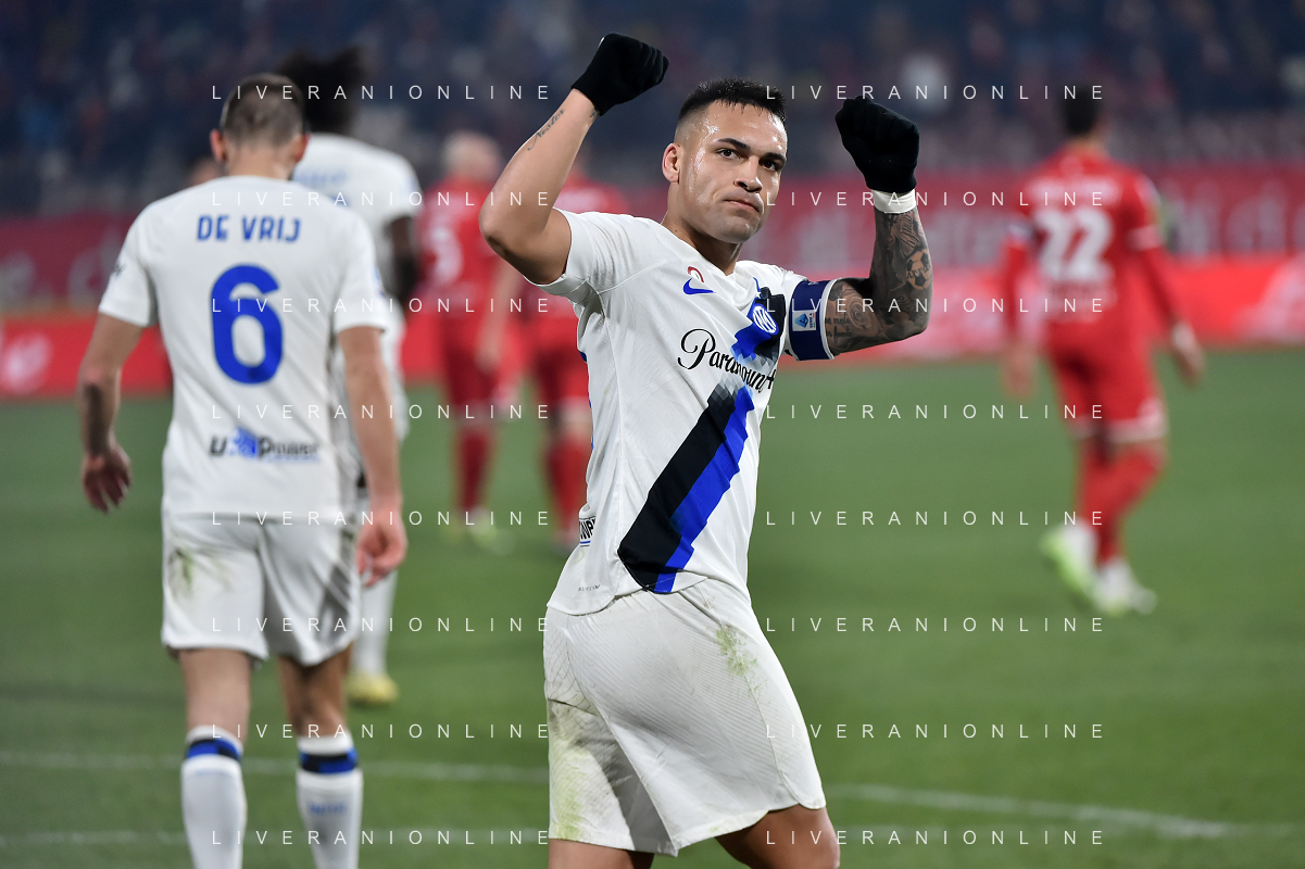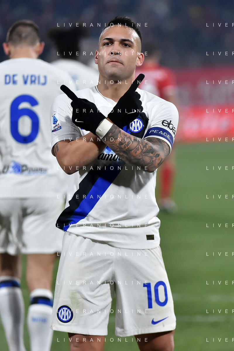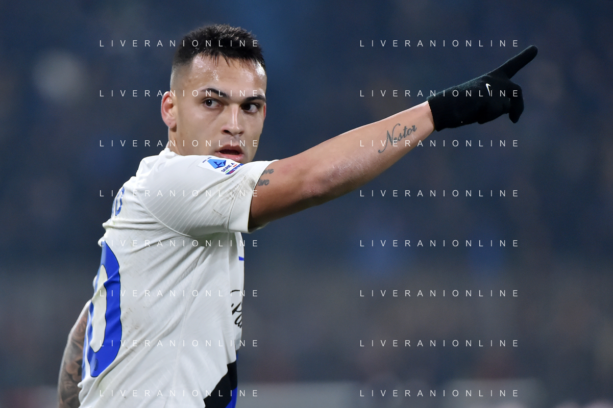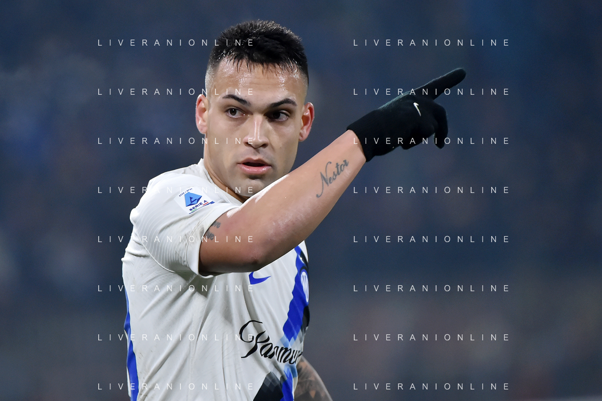 Monza vs Inter nella foto Lautaro Martinez (Inter) esulta dopo il gol del 4 a 1 Monza 13-01-2024 U-Power Stadium Campionato Serie A TIM - 20a giornata foto Roberto Garavaglia/Agenzia Aldo Liverani sas