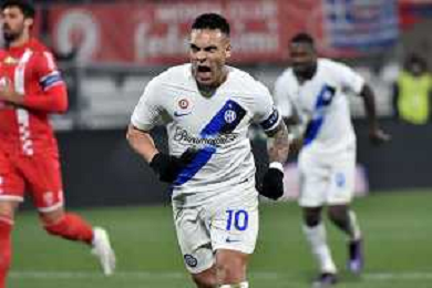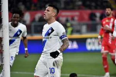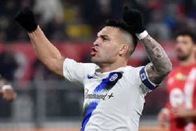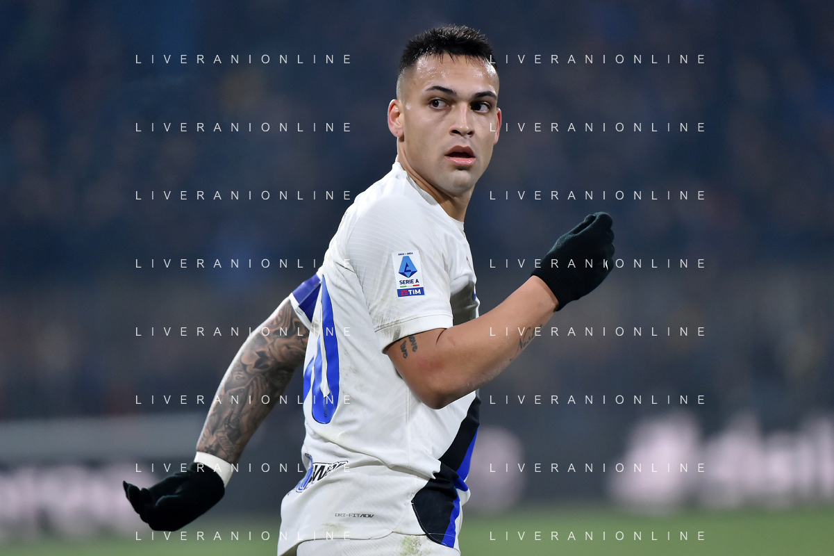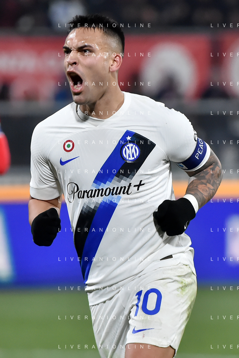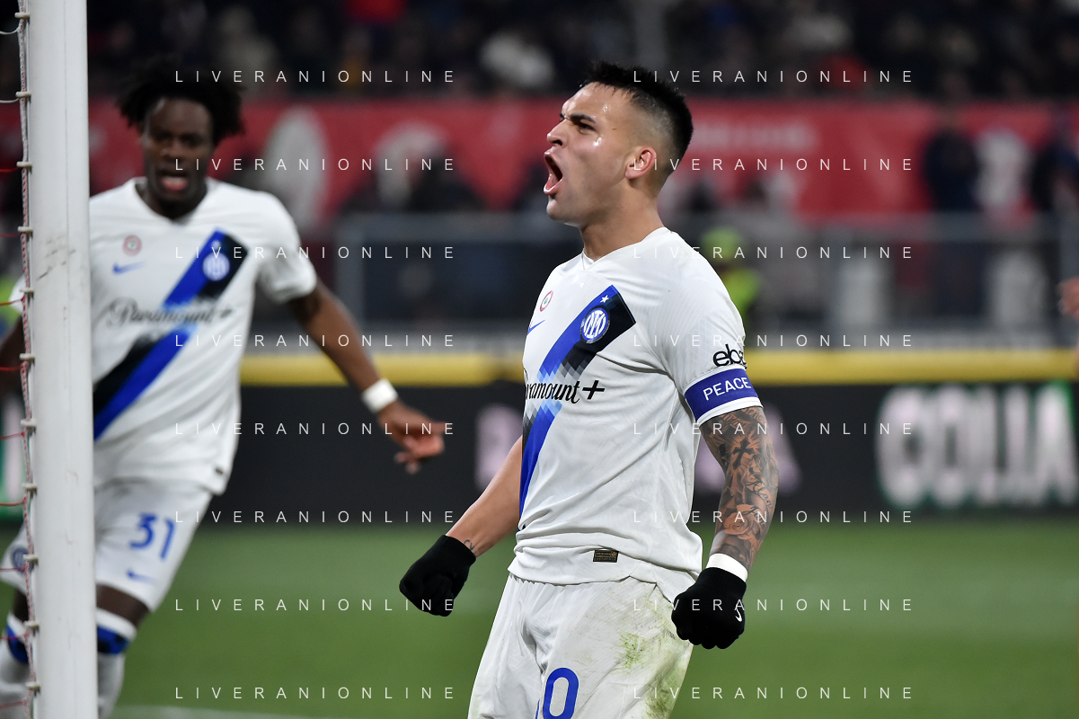 Monza vs Inter nella foto Lautaro Martinez (Inter) esulta dopo il gol del 4 a 1 Monza 13-01-2024 U-Power Stadium Campionato Serie A TIM - 20a giornata foto Roberto Garavaglia/Agenzia Aldo Liverani sas