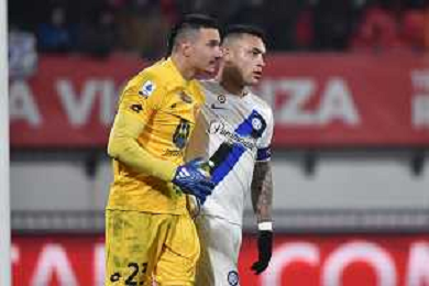 Monza vs Inter nella foto Lautaro Martinez (Inter) consola Alessandro Sorrentino (Monza) a fine gara Monza 13-01-2024 U-Power Stadium Campionato Serie A TIM - 20a giornata foto Roberto Garavaglia/Agenzia Aldo Liverani sas