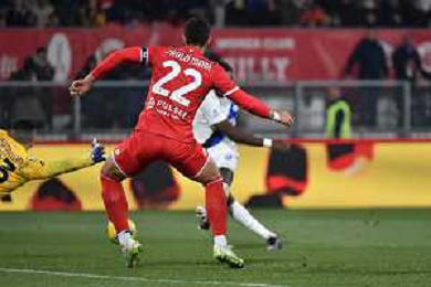 Monza vs Inter nella foto Marcus Thuram (Inter) segna il gol del 5 a 0 Monza 13-01-2024 U-Power Stadium Campionato Serie A TIM - 20a giornata foto Roberto Garavaglia/Agenzia Aldo Liverani sas