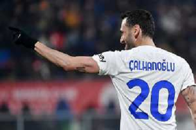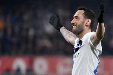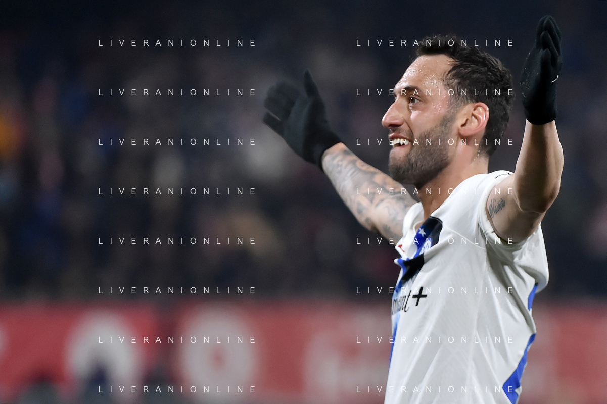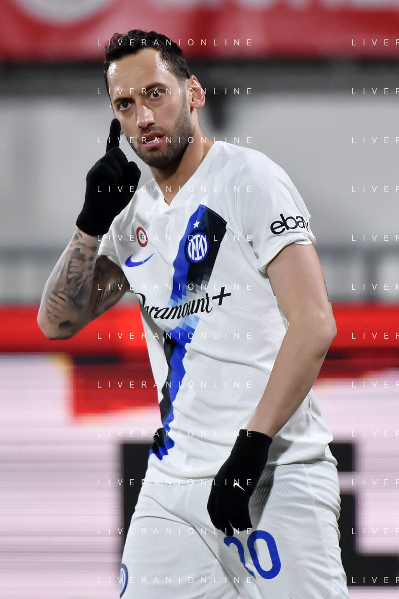 Monza vs Inter nella foto Hakan Calhanoglu (Inter) esulta dopo il gol del 3 a 0 Monza 13-01-2024 U-Power Stadium Campionato Serie A TIM - 20a giornata foto Roberto Garavaglia/Agenzia Aldo Liverani sas