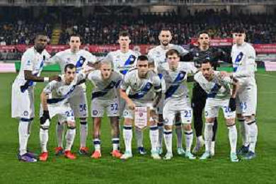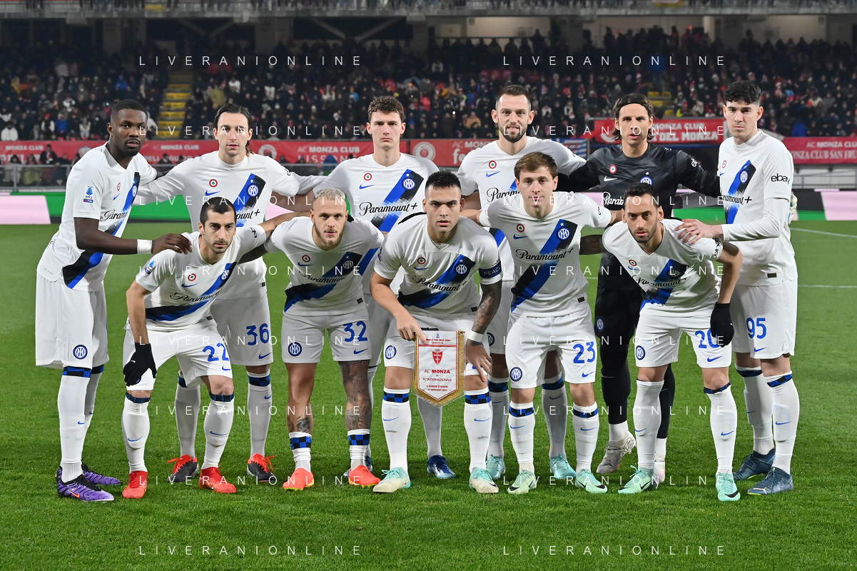 Monza vs Inter nella foto formazione Inter, in piedi da SX Marcus Thuram, Matteo Darmian, Benjamin Pavard, Stefan de Vrij, Yann Sommer e Alessandro Bastoni; in basso da SX Henrikh Mkhitaryan, Federico Dimarco, Lautaro Martinez, Nicolo' Barella e Hakan Calhanoglu Monza 13-01-2024 U-Power Stadium Campionato Serie A TIM - 20a giornata foto Roberto Garavaglia/Agenzia Aldo Liverani sas