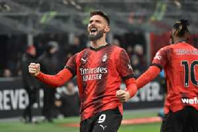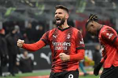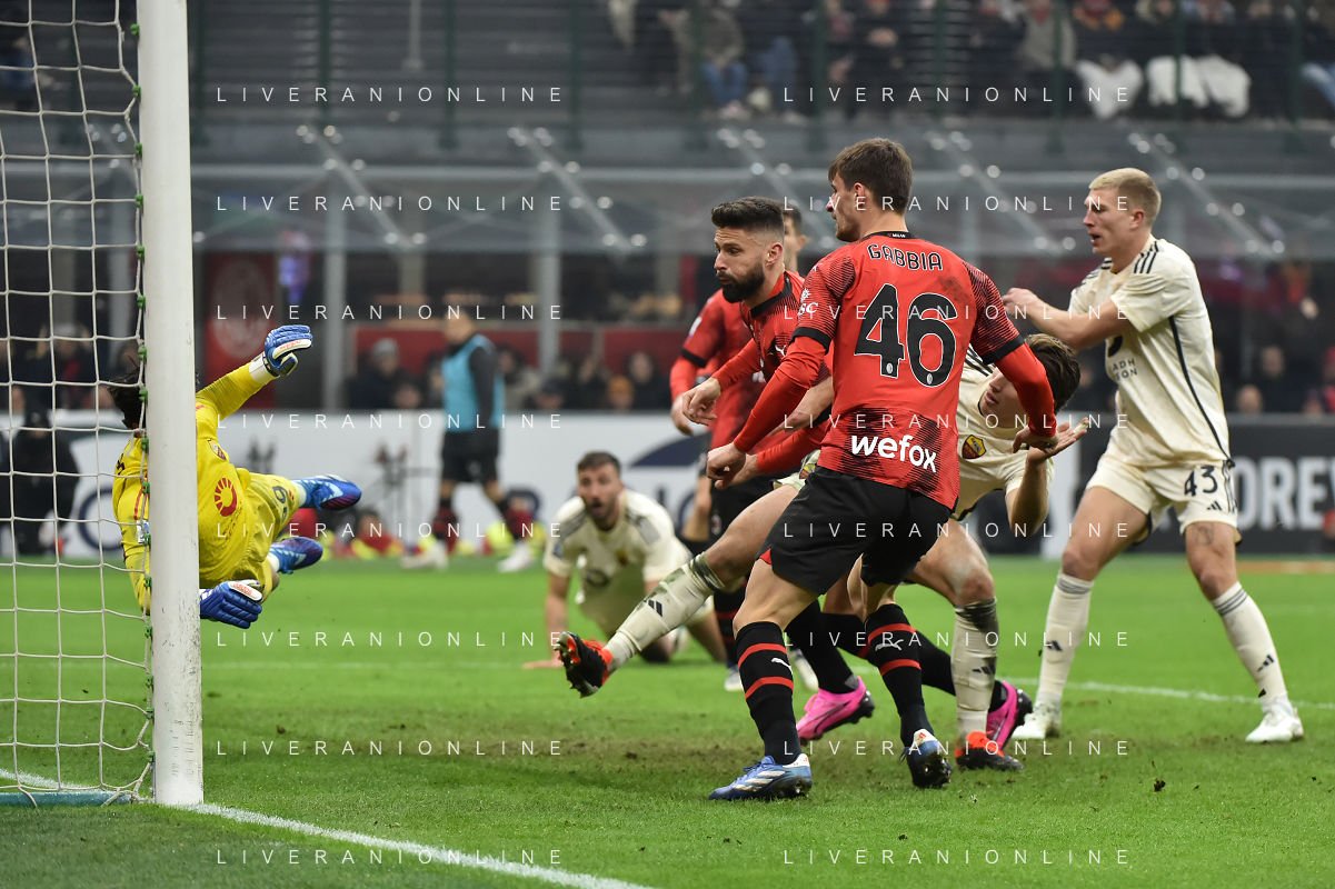 Milan vs Roma nella foto Olivier Giroud (Milan) segna il gol del 2 a 0 Milano 14-01-2024 Stadio Giuseppe Meazza - San Siro Campionato Serie A TIM - 20a giornata foto Roberto Garavaglia/Agenzia Aldo Liverani sas/AGENZIA ALDO LIVERANI SAS
