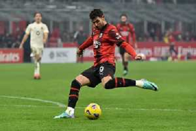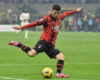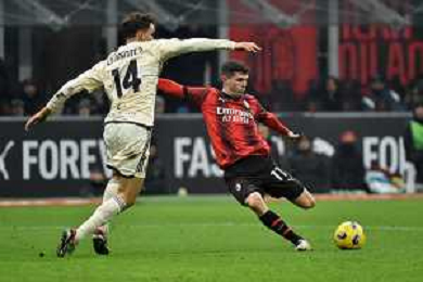 Milan vs Roma nella foto Christian Mate Pulisic (Milan) vicino al gol del 3 a 0 con un tiro da fuori area Milano 14-01-2024 Stadio Giuseppe Meazza - San Siro Campionato Serie A TIM - 20a giornata foto Roberto Garavaglia/Agenzia Aldo Liverani sas/AGENZIA ALDO LIVERANI SAS