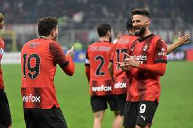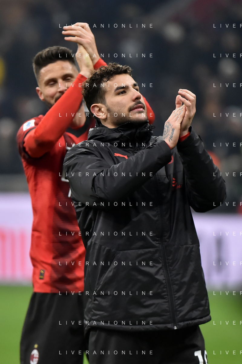 Milan vs Roma nella foto Theo Hernandez (Milan) e Olivier Giroud (Milan) esultanza a fine partita Milano 14-01-2024 Stadio Giuseppe Meazza - San Siro Campionato Serie A TIM - 20a giornata foto Roberto Garavaglia/Agenzia Aldo Liverani sas/AGENZIA ALDO LIVERANI SAS