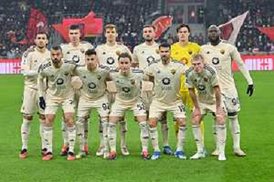 Milan vs Roma nella foto formazione Roma, in piedi da SX Leandro Paredes, Gianluca Mancini, Diego Llorente, Bryan Cristante, Mile Svilar e Romelu Lukaku; in basso da SX Leonardo Spinazzola, Stephan El Shaarawy, Edoardo Bove, Mehmet Zeki Celik e Rasmus Kristensen Milano 14-01-2024 Stadio Giuseppe Meazza - San Siro Campionato Serie A TIM - 20a giornata foto Roberto Garavaglia/Agenzia Aldo Liverani sas