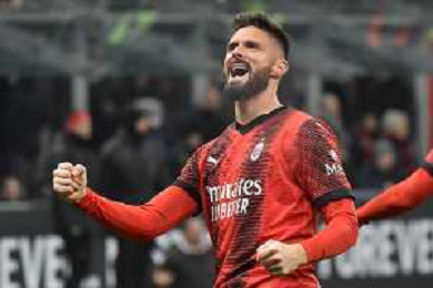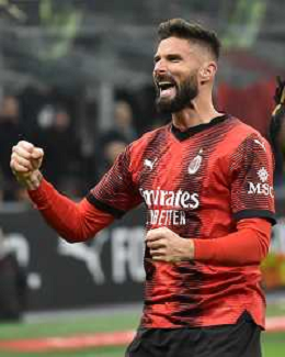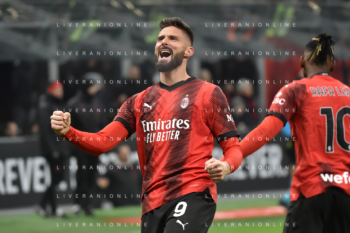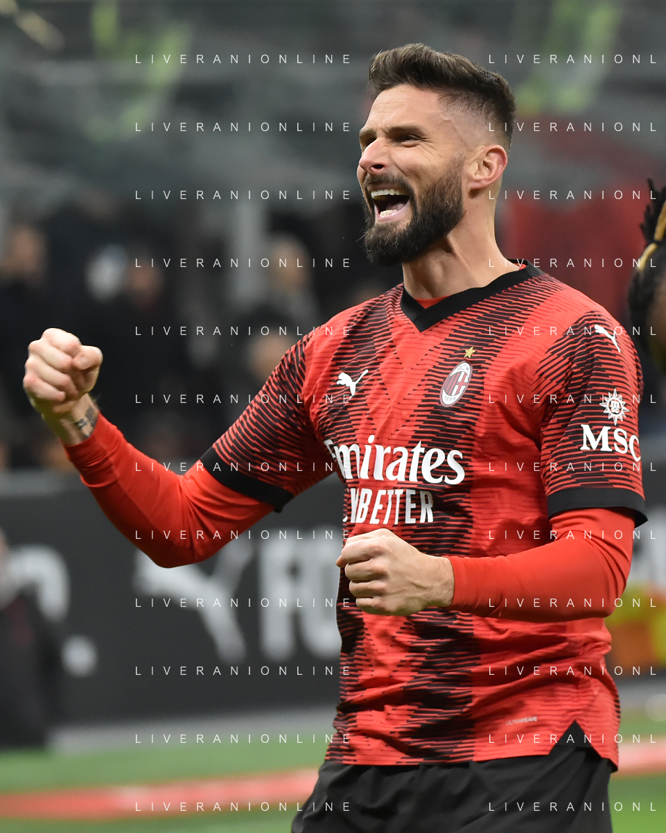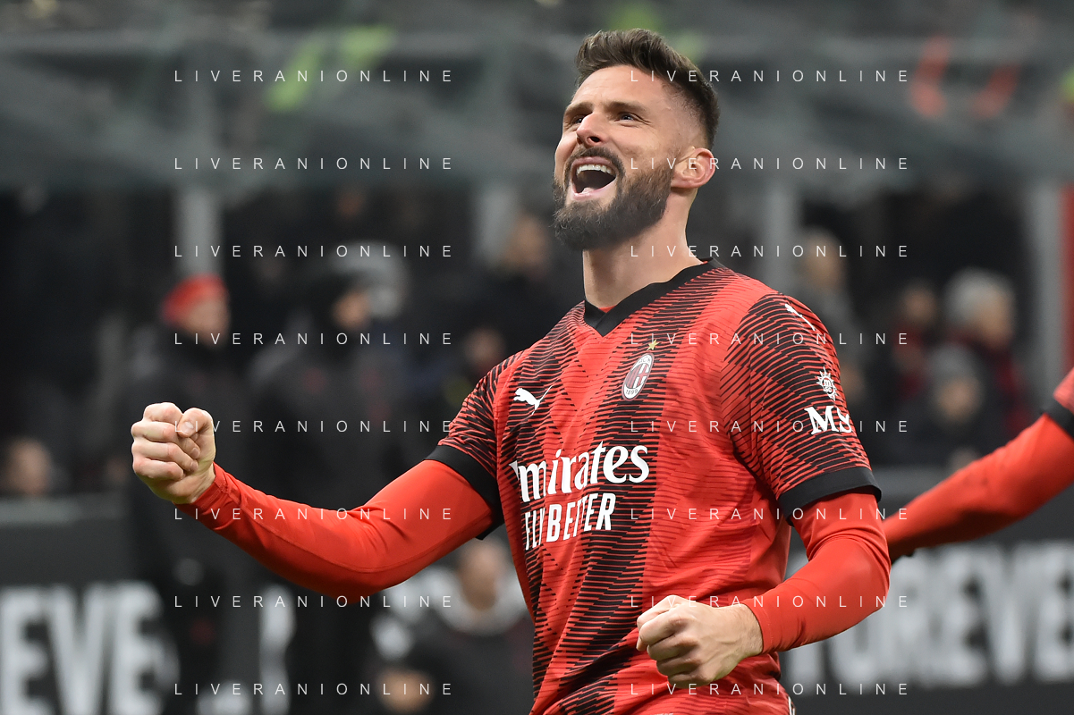 Milan vs Roma nella foto Olivier Giroud (Milan) esulta dopo il gol del 2 a 0 Milano 14-01-2024 Stadio Giuseppe Meazza - San Siro Campionato Serie A TIM - 20a giornata foto Roberto Garavaglia/Agenzia Aldo Liverani sas