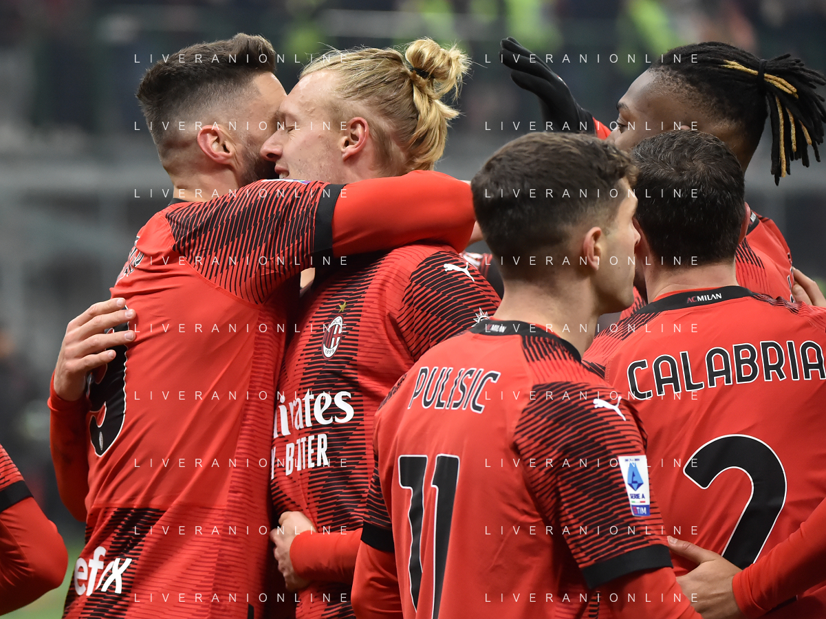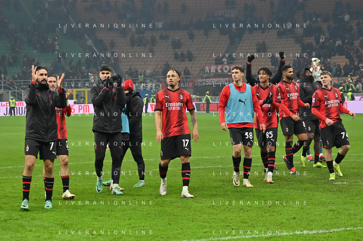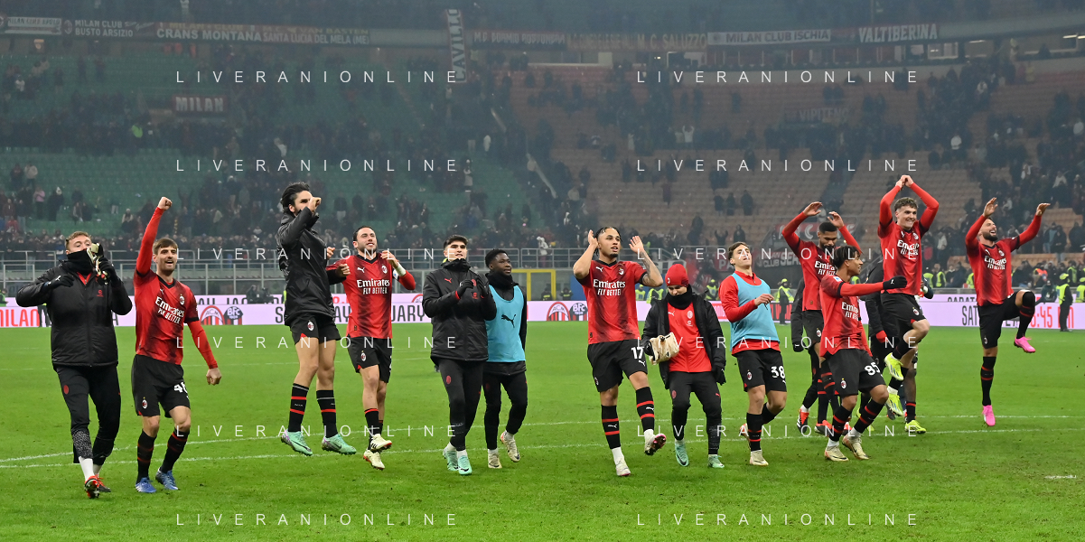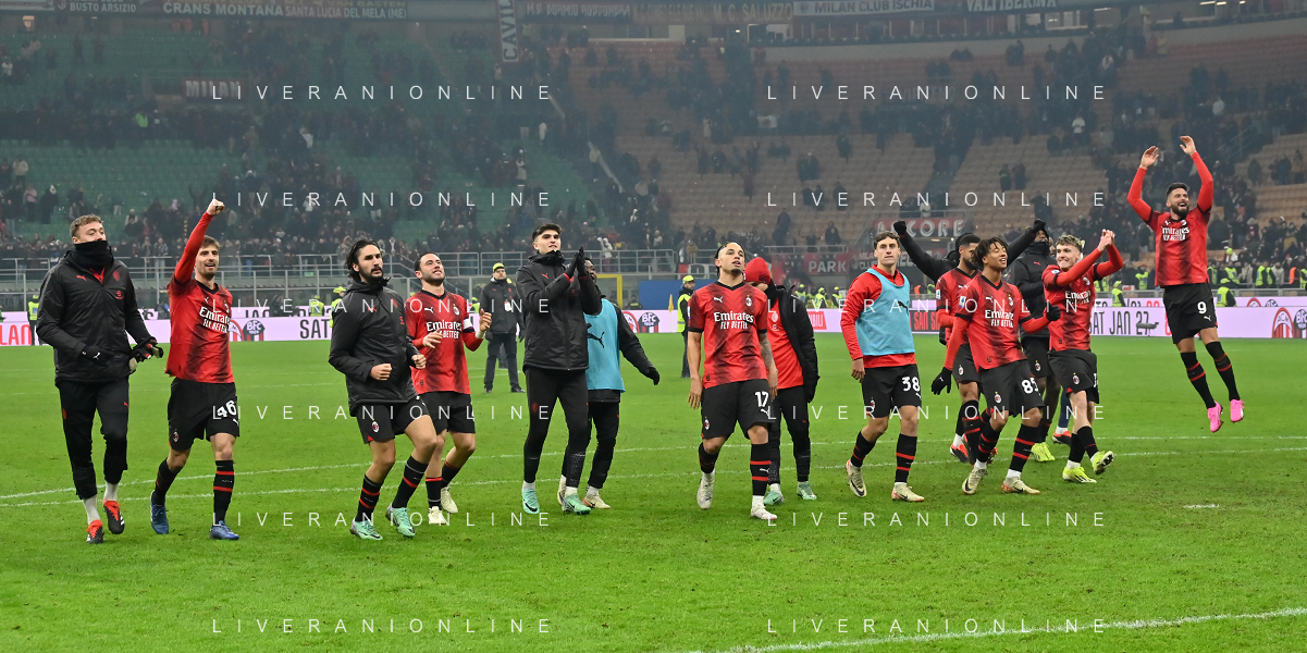 Milan vs Roma nella foto esultanza finale Milan Milano 14-01-2024 Stadio Giuseppe Meazza - San Siro Campionato Serie A TIM - 20a giornata foto Roberto Garavaglia/Agenzia Aldo Liverani sas/AGENZIA ALDO LIVERANI SAS