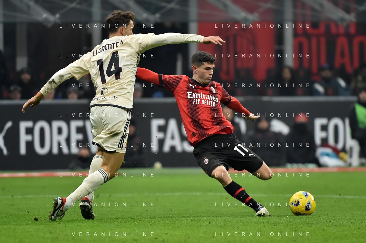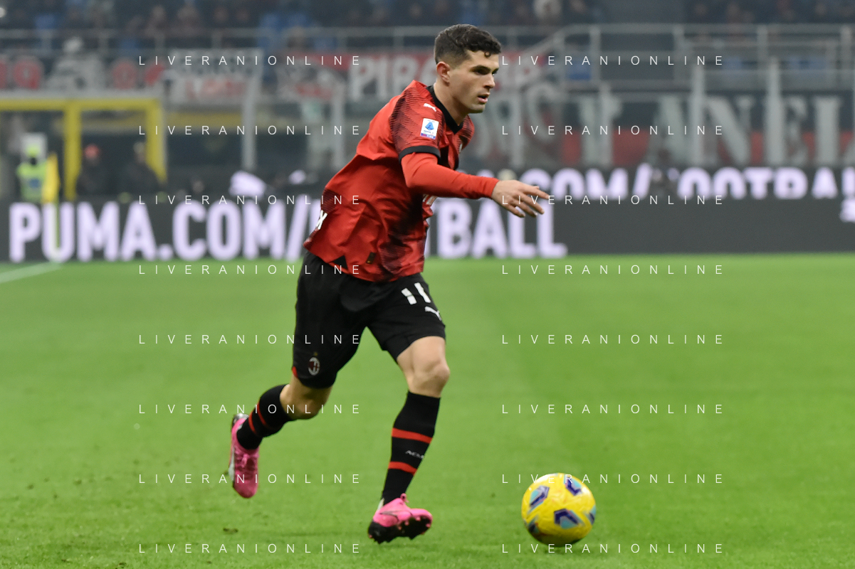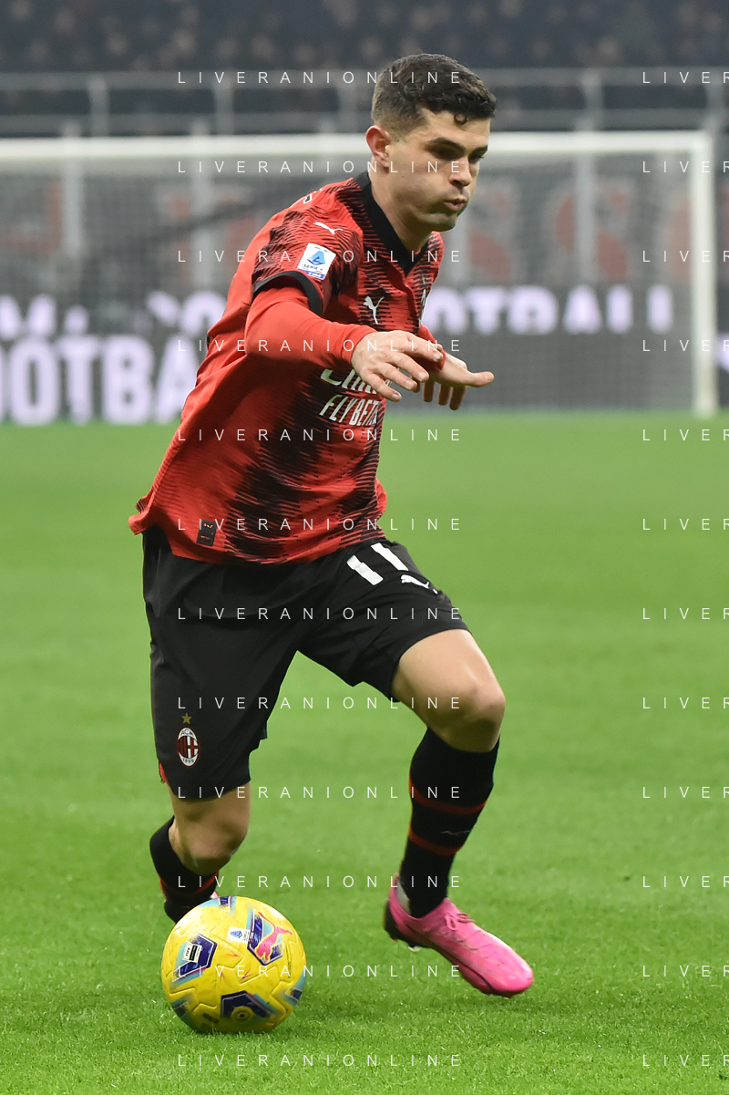 Milan vs Roma nella foto Christian Mate Pulisic (Milan) Milano 14-01-2024 Stadio Giuseppe Meazza - San Siro Campionato Serie A TIM - 20a giornata foto Roberto Garavaglia/Agenzia Aldo Liverani sas