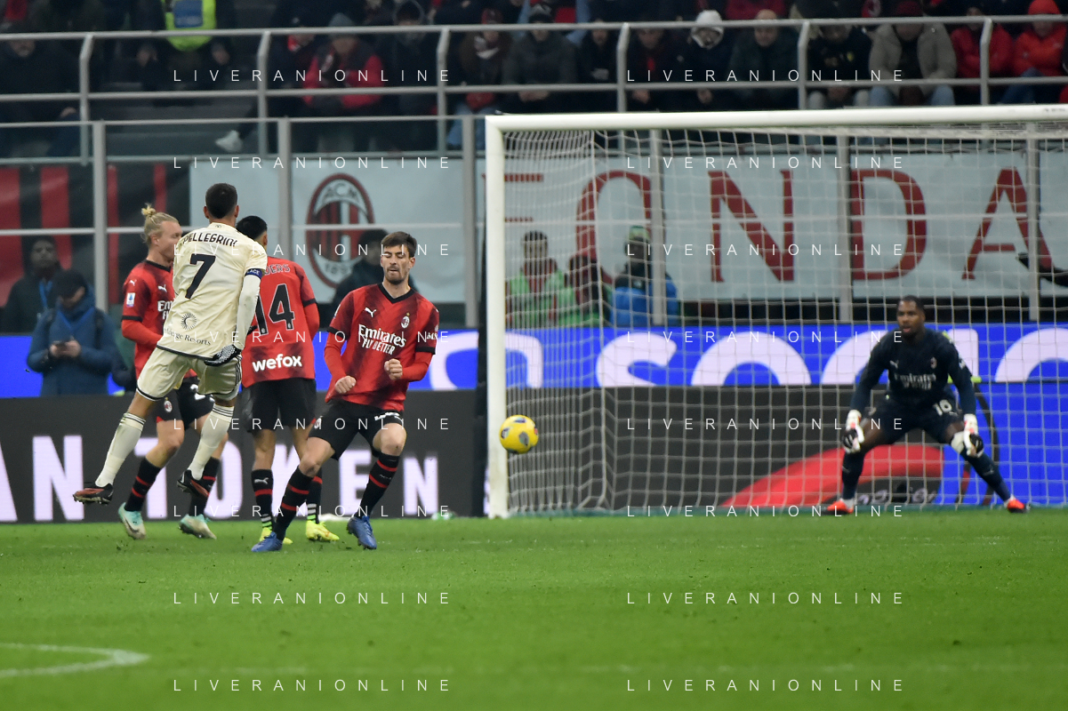Milan vs Roma nella foto Leandro Paredes (Roma) segna il gol dell'1 a 2 Milano 14-01-2024 Stadio Giuseppe Meazza - San Siro Campionato Serie A TIM - 20a giornata foto Roberto Garavaglia/Agenzia Aldo Liverani sas/AGENZIA ALDO LIVERANI SAS