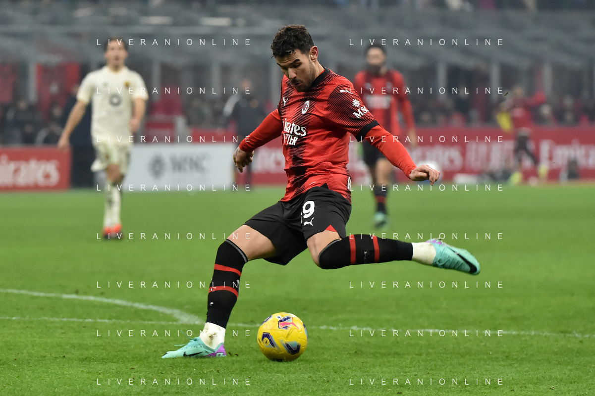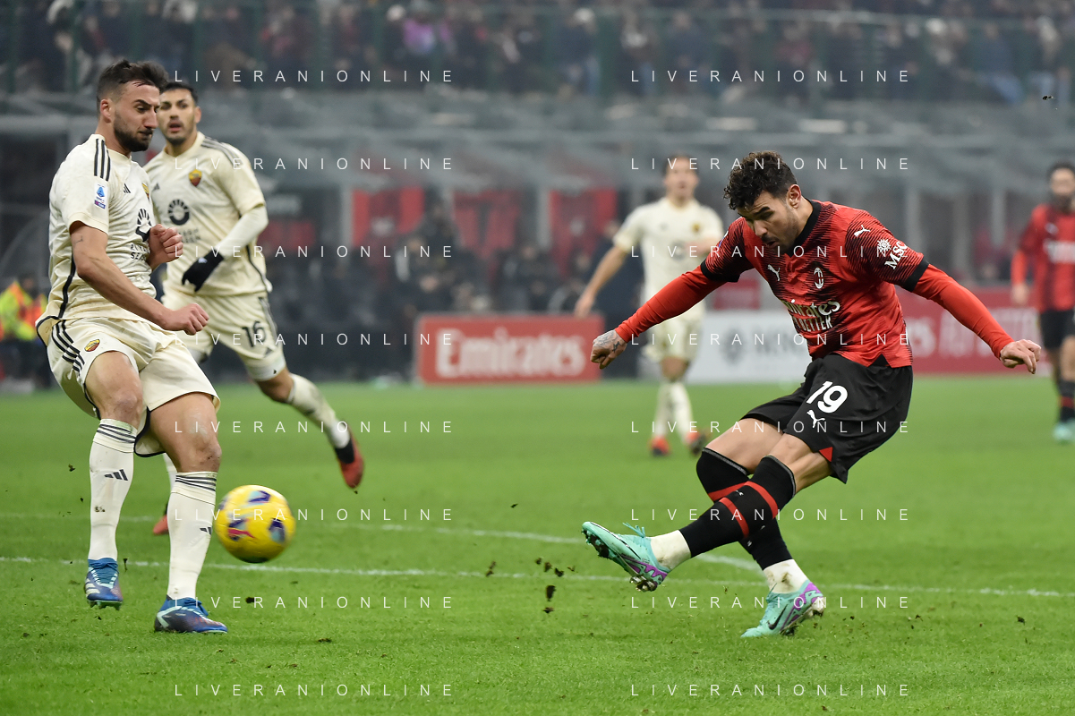 Milan vs Roma nella foto Theo Hernandez (Milan) segna il gol del 3 a 1 Milano 14-01-2024 Stadio Giuseppe Meazza - San Siro Campionato Serie A TIM - 20a giornata foto Roberto Garavaglia/Agenzia Aldo Liverani sas/AGENZIA ALDO LIVERANI SAS