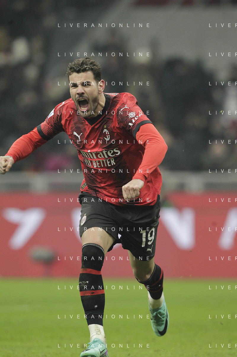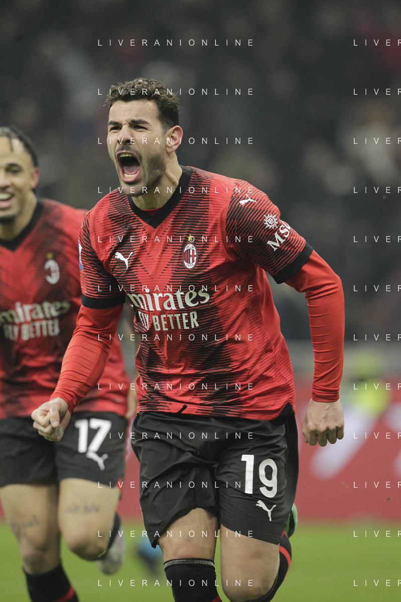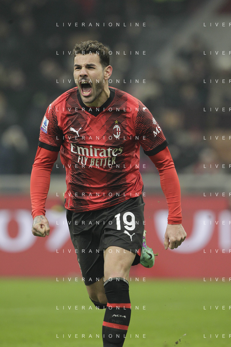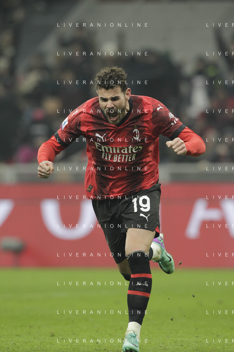 Milan vs Roma nella foto Theo Hernandez (Milan) esulta dopo il gol del 3 a 1 Milano 14-01-2024 Stadio Giuseppe Meazza - San Siro Campionato Serie A TIM - 20a giornata foto Roberto Garavaglia/Agenzia Aldo Liverani sas/AGENZIA ALDO LIVERANI SAS