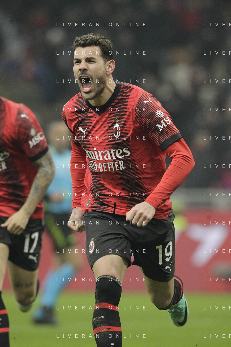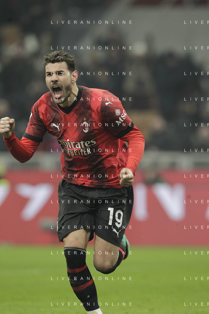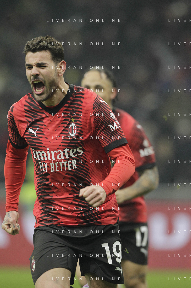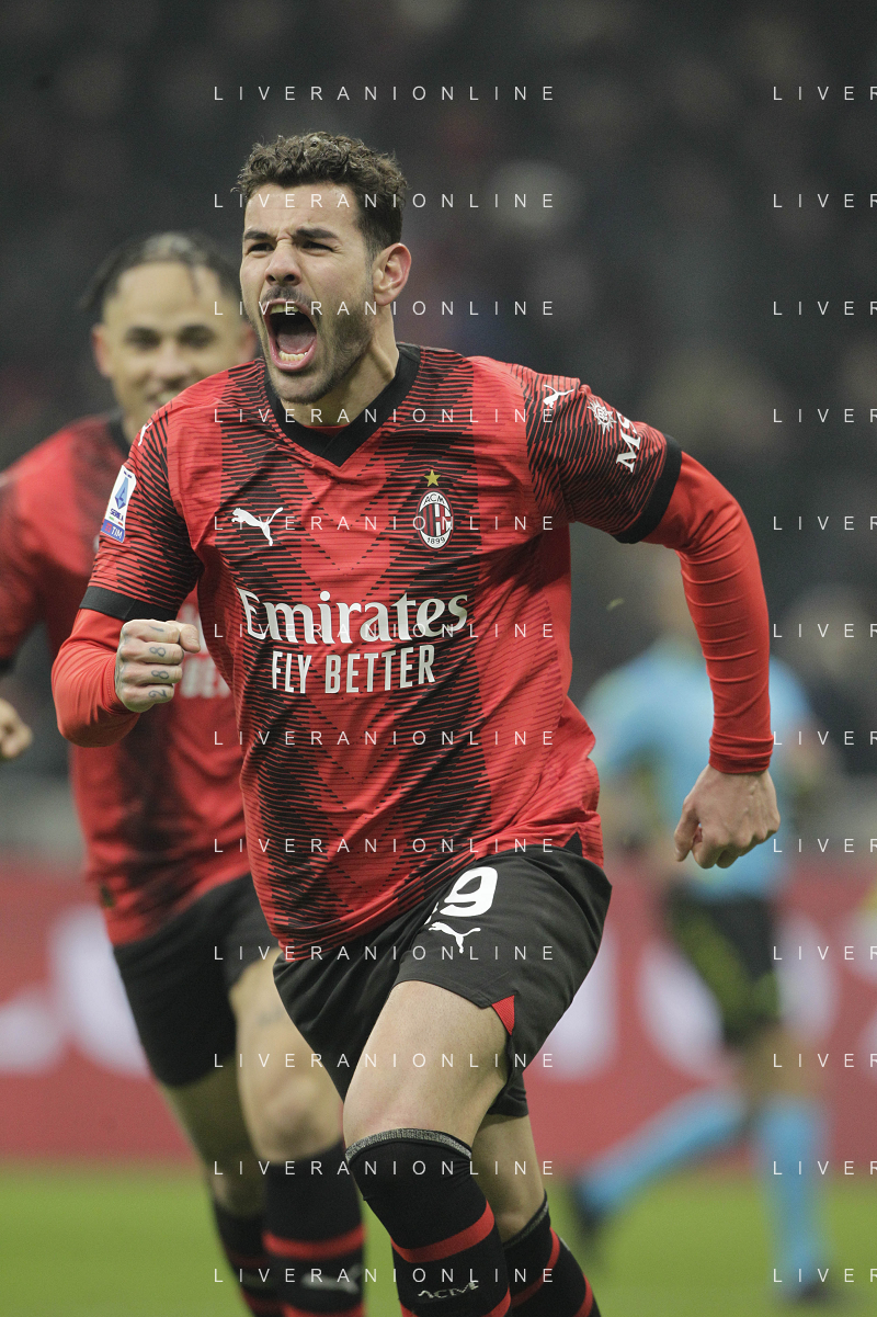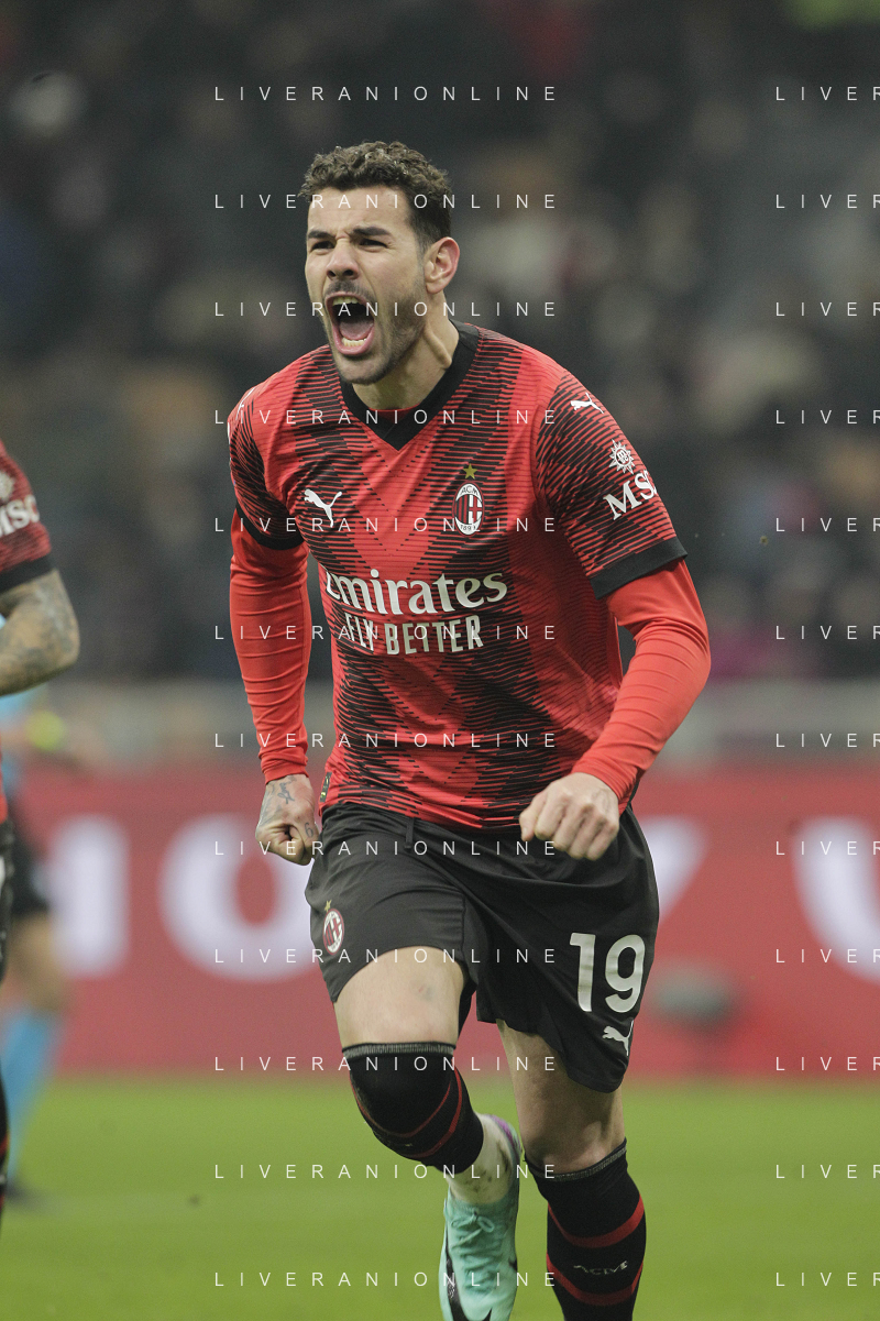 Milan vs Roma nella foto Theo Hernandez (Milan) esulta dopo il gol del 3 a 1 Milano 14-01-2024 Stadio Giuseppe Meazza - San Siro Campionato Serie A TIM - 20a giornata foto Roberto Garavaglia/Agenzia Aldo Liverani sas/AGENZIA ALDO LIVERANI SAS