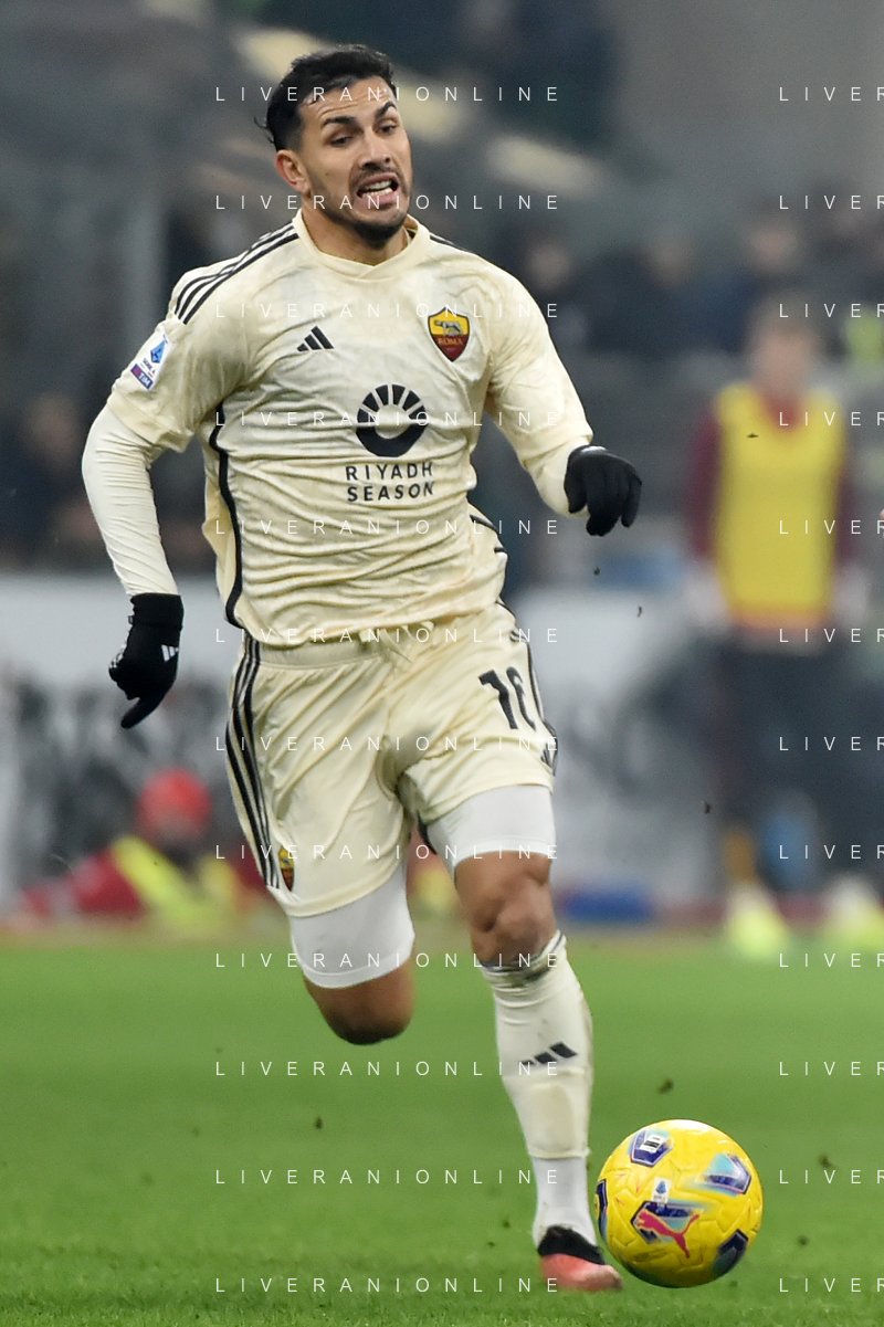 Milan vs Roma nella foto Lorenzo Pellegrini (Roma) vicino al gol del 2 a 2 con un tiro da fuori area Milano 14-01-2024 Stadio Giuseppe Meazza - San Siro Campionato Serie A TIM - 20a giornata foto Roberto Garavaglia/Agenzia Aldo Liverani sas/AGENZIA ALDO LIVERANI SAS
