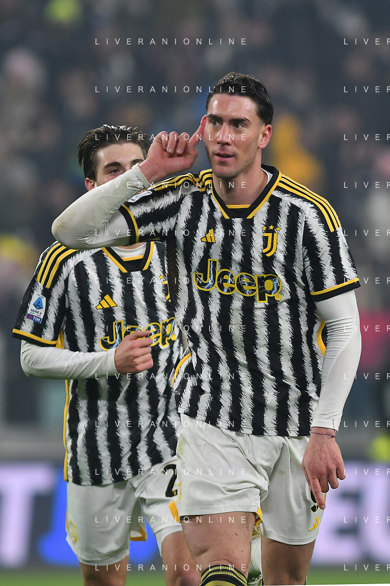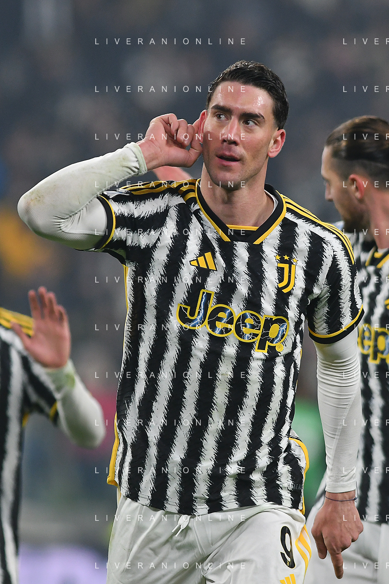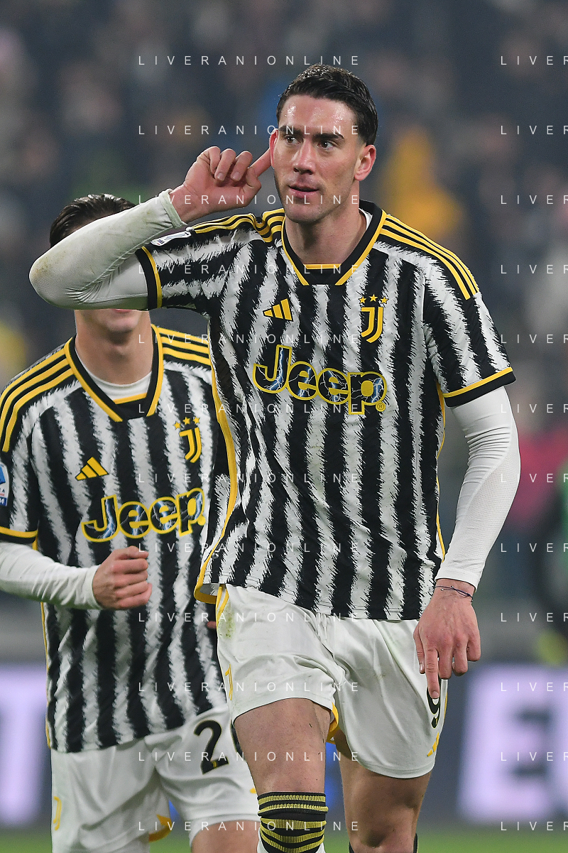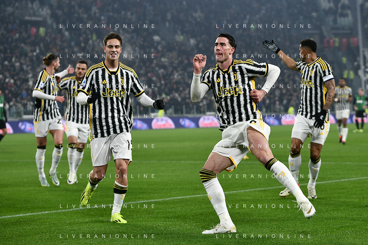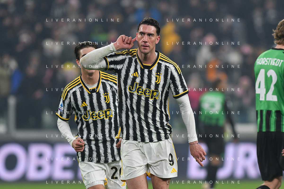 Torino 16.01.2024 Allianz Stadium @Manuela Viganti/Ag. Aldo Liverani sas Juventus vs Sassuolo Campionato Calcio Serie A TIM 2023/2024 20a giornata Nella foto: esultanza dusan vlahovic e dopo il gol
