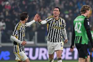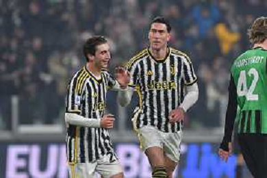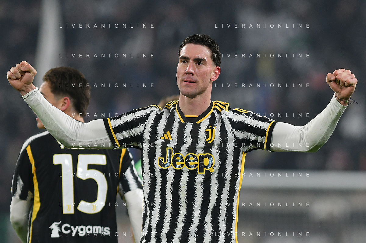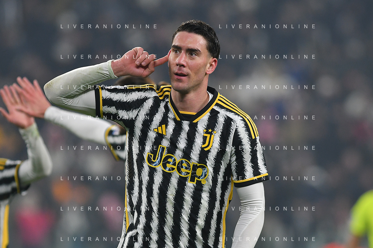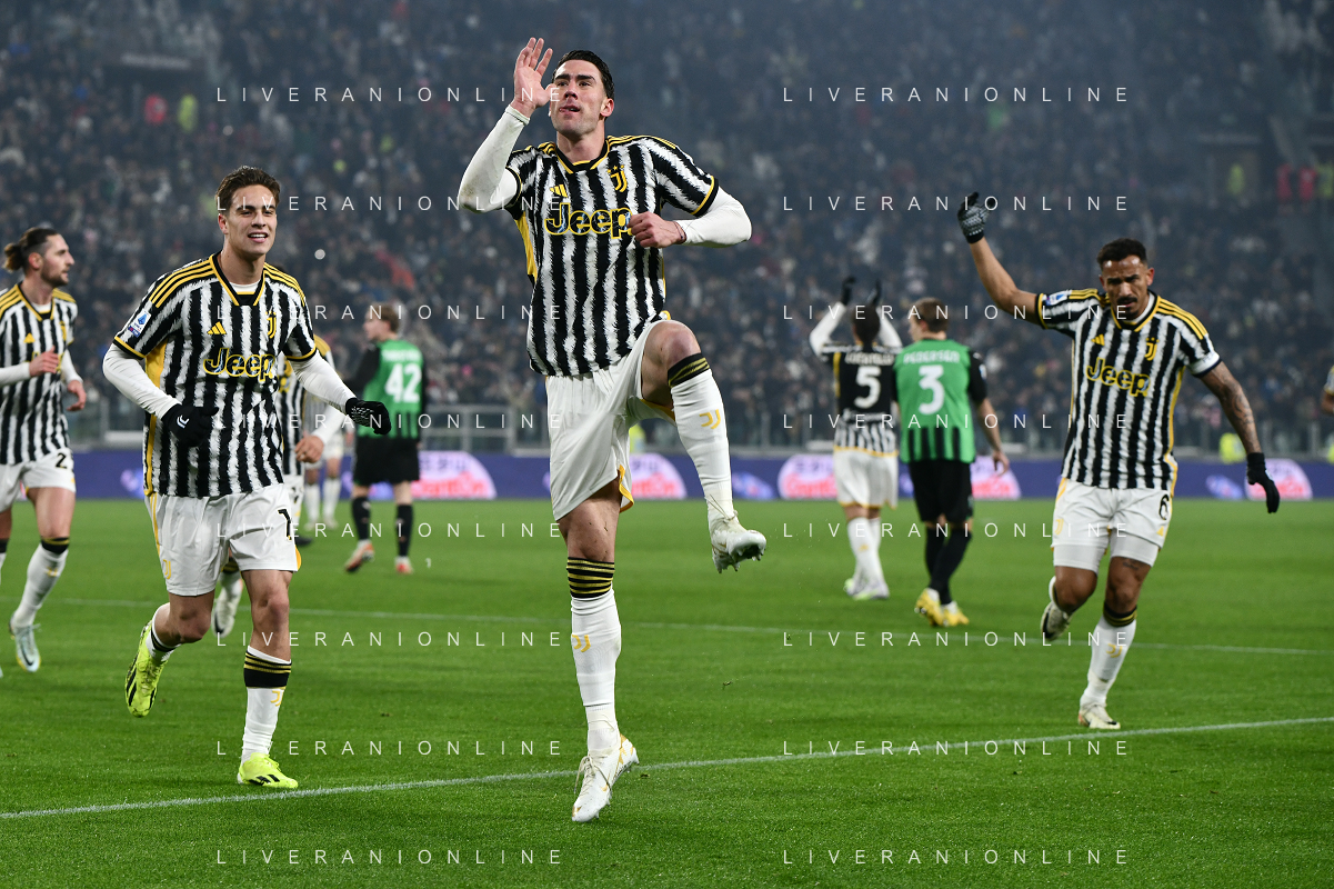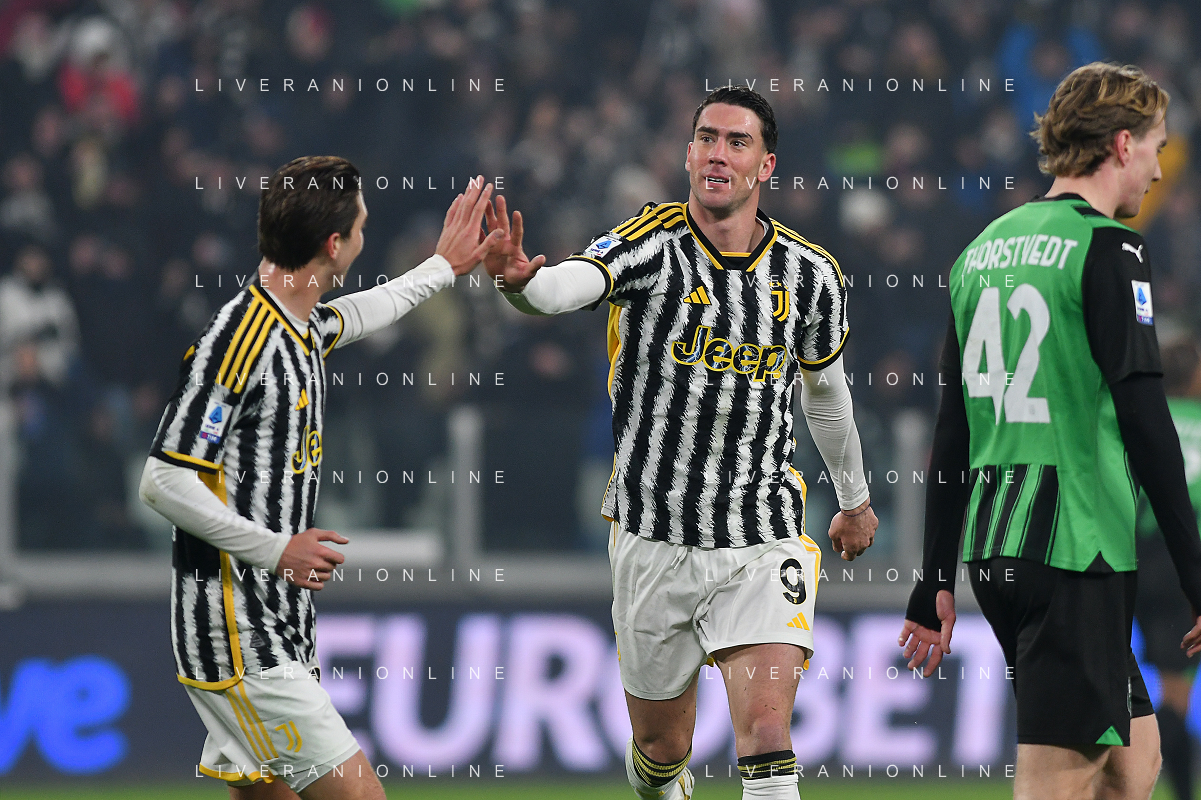 Torino 16.01.2024 Allianz Stadium @Manuela Viganti/Ag. Aldo Liverani sas Juventus vs Sassuolo Campionato Calcio Serie A TIM 2023/2024 20a giornata Nella foto: esultanza dusan vlahovic e dopo il gol