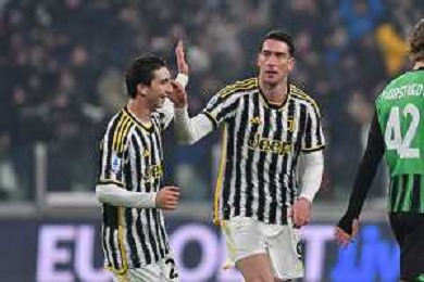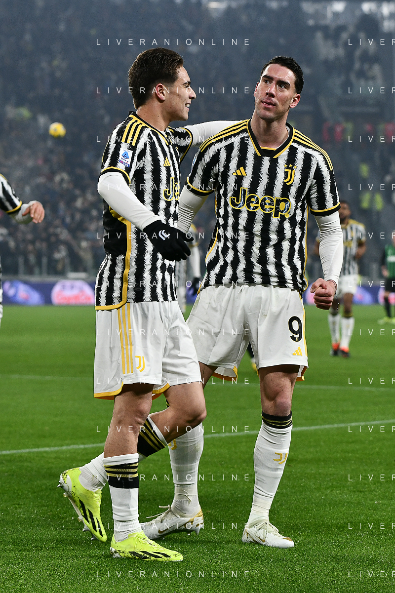 Torino 16.01.2024 Allianz Stadium @Manuela Viganti/Ag. Aldo Liverani sas Juventus vs Sassuolo Campionato Calcio Serie A TIM 2023/2024 20a giornata Nella foto: esultanza dusan vlahovic e kenan yildiz dopo il gol