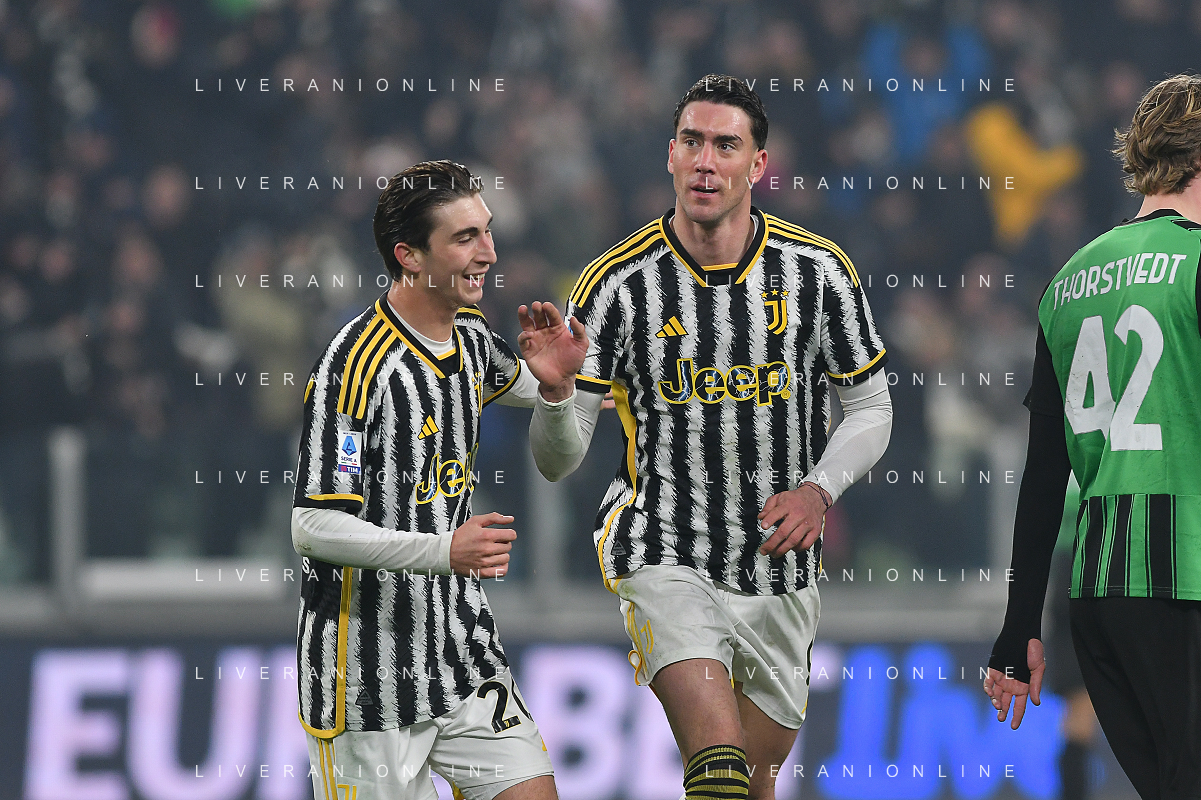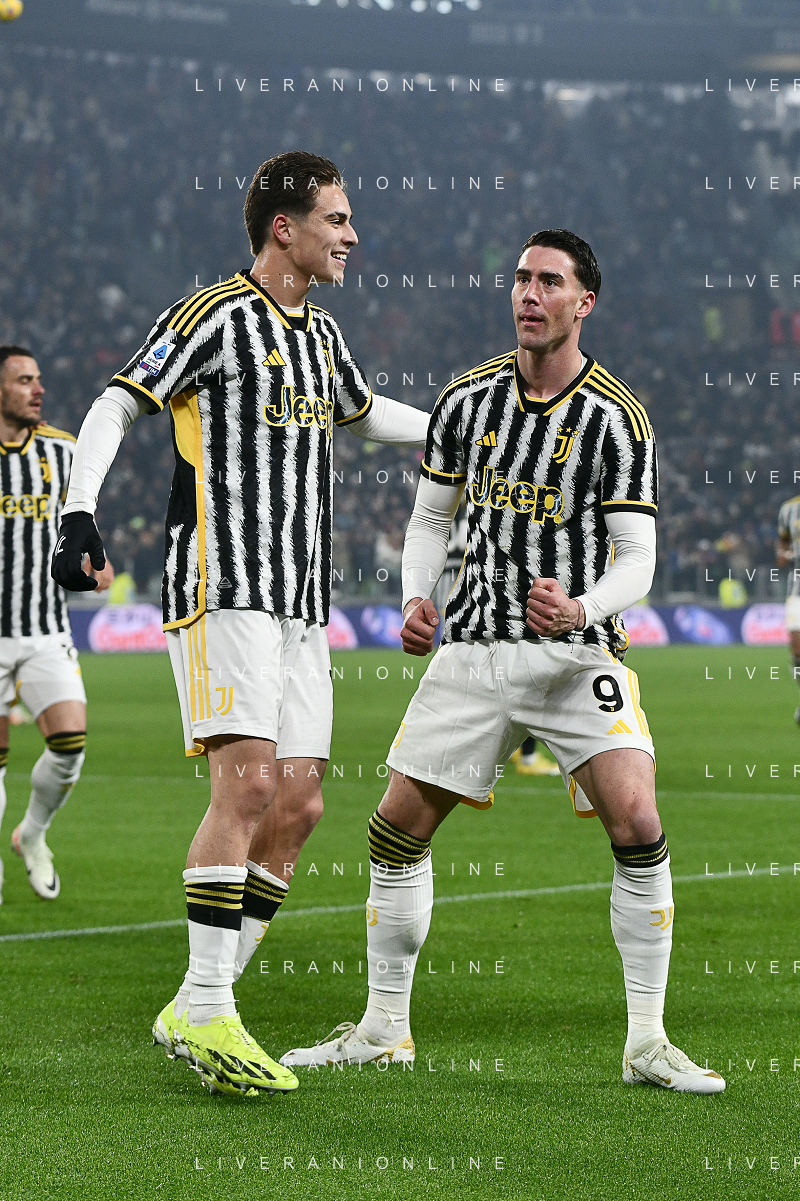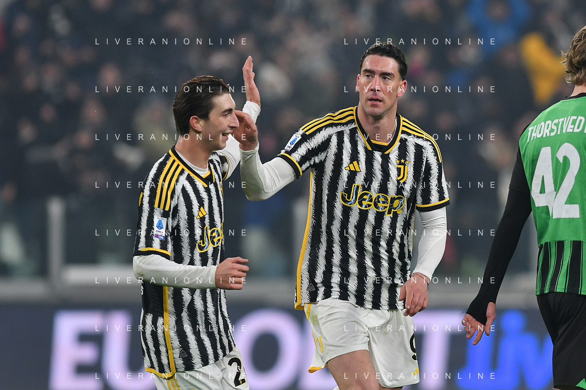 Torino 16.01.2024 Allianz Stadium @Manuela Viganti/Ag. Aldo Liverani sas Juventus vs Sassuolo Campionato Calcio Serie A TIM 2023/2024 20a giornata Nella foto: esultanza dusan vlahovic e fabio miretti dopo il gol
